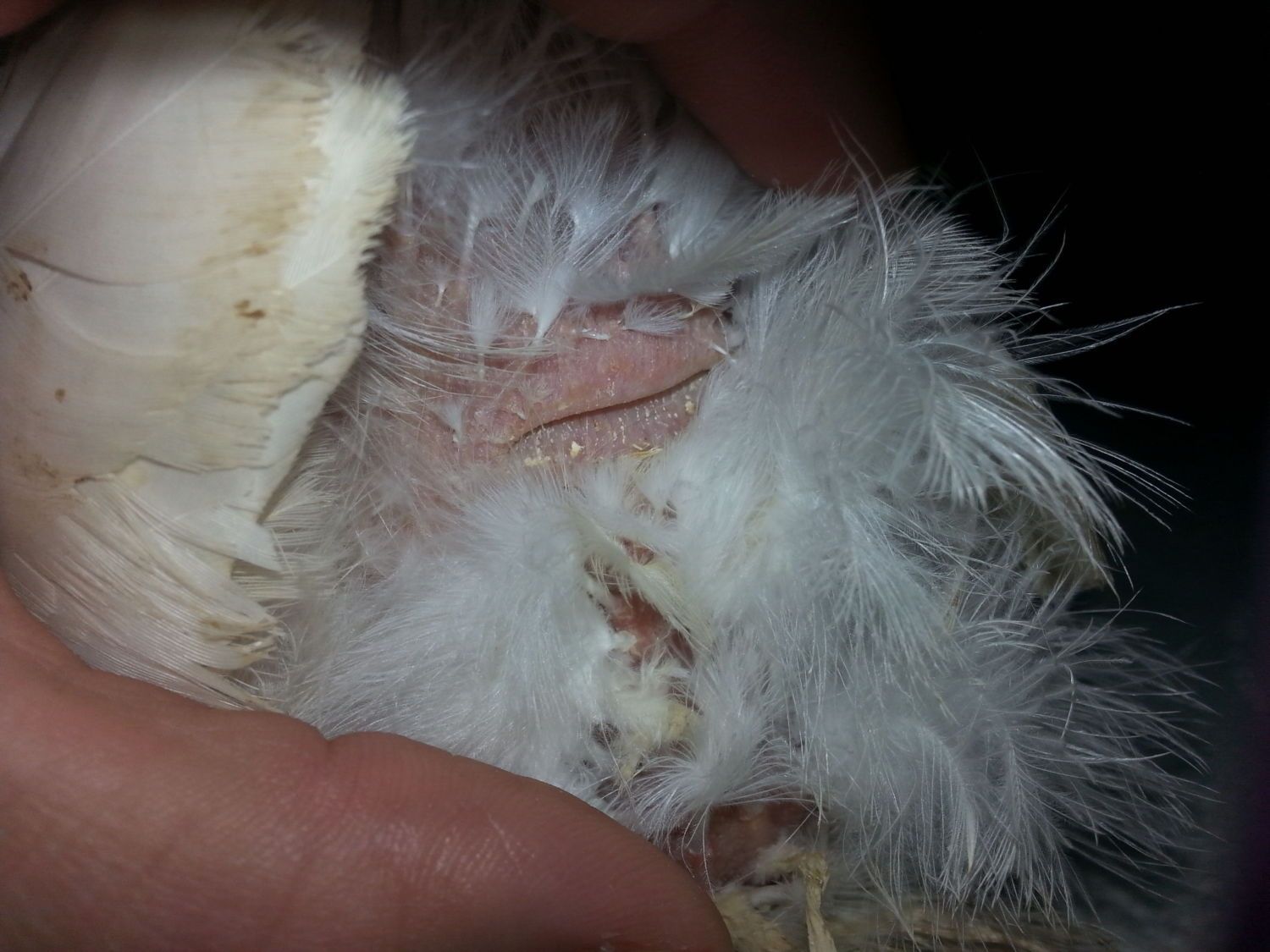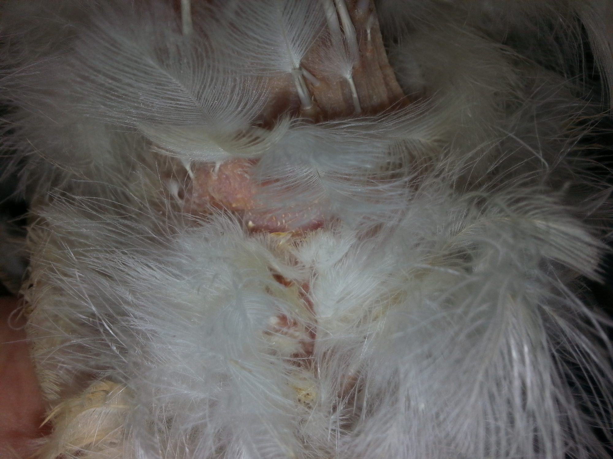 I went out to the coop and found this hen laying around. When frightened she attempts to walk with her belly on the ground and uses her wings for balance. I separated her and have food and water because I suspect she hasn't ate or drank much. She went for the food but is reluctant to drink. She is normally very skittish but today she lay and let me check her over.