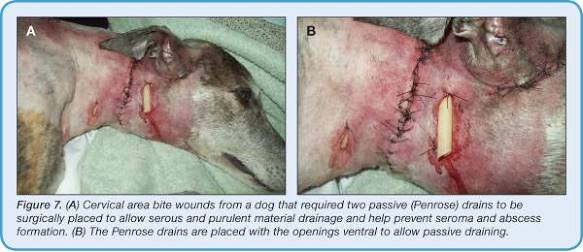 She is inside the house in a dog crate with food and water right now so I'll start cleaning and bandaging soon.