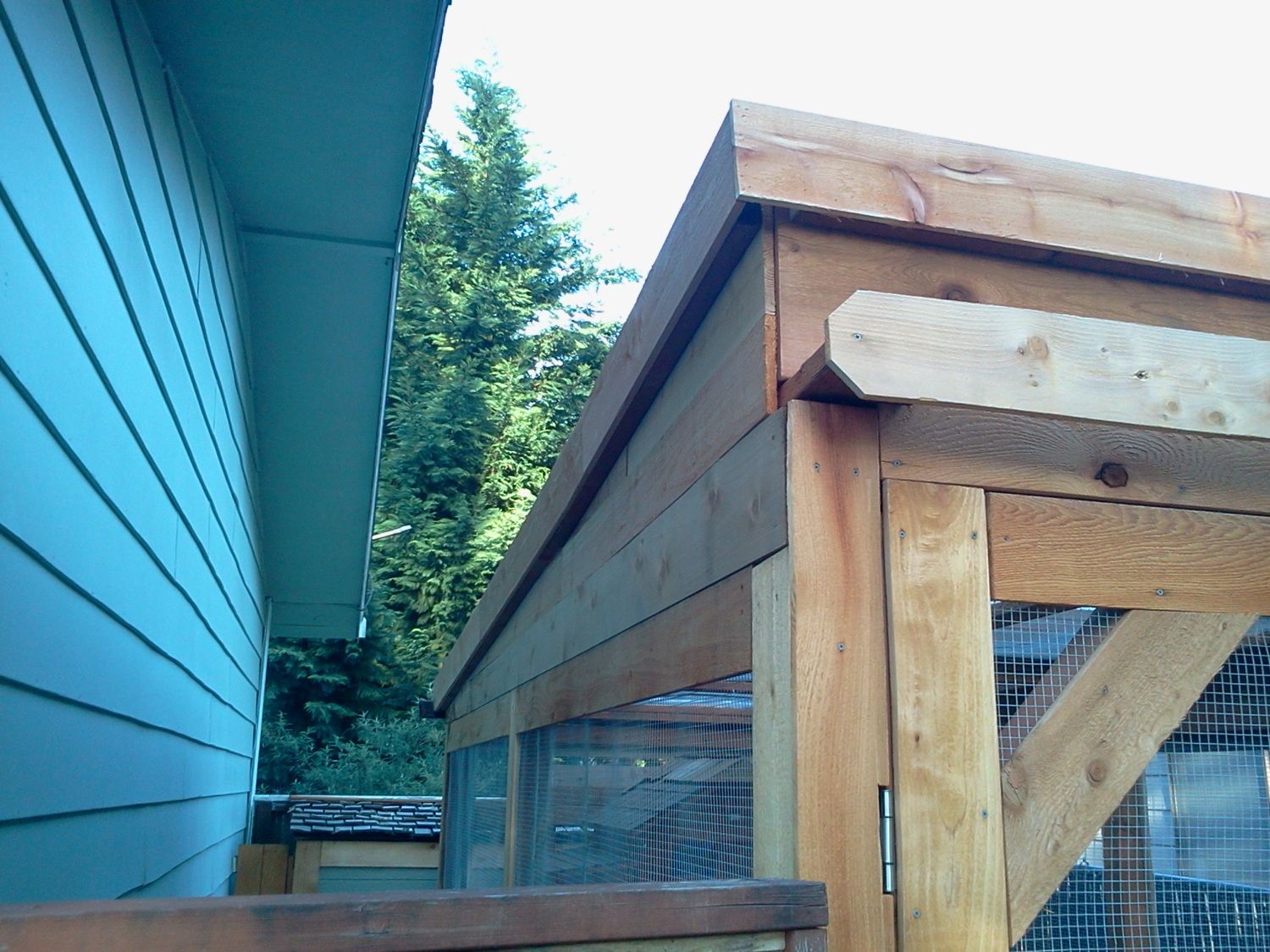 Made some changes to Hen Heaven. Was not happy with the way the roof drained rain so I changed the pitch of it and braced it every 2 ft to prevent in sagging or low spots. After completing that i did not like the look of it so I re-trimmed the whole top with cedar and redid the front trim to look better. It turned out very nice and just used cedar fence boards and alot of wood I had around so the cost was minimal. Thanks for looking and always open to feedback.