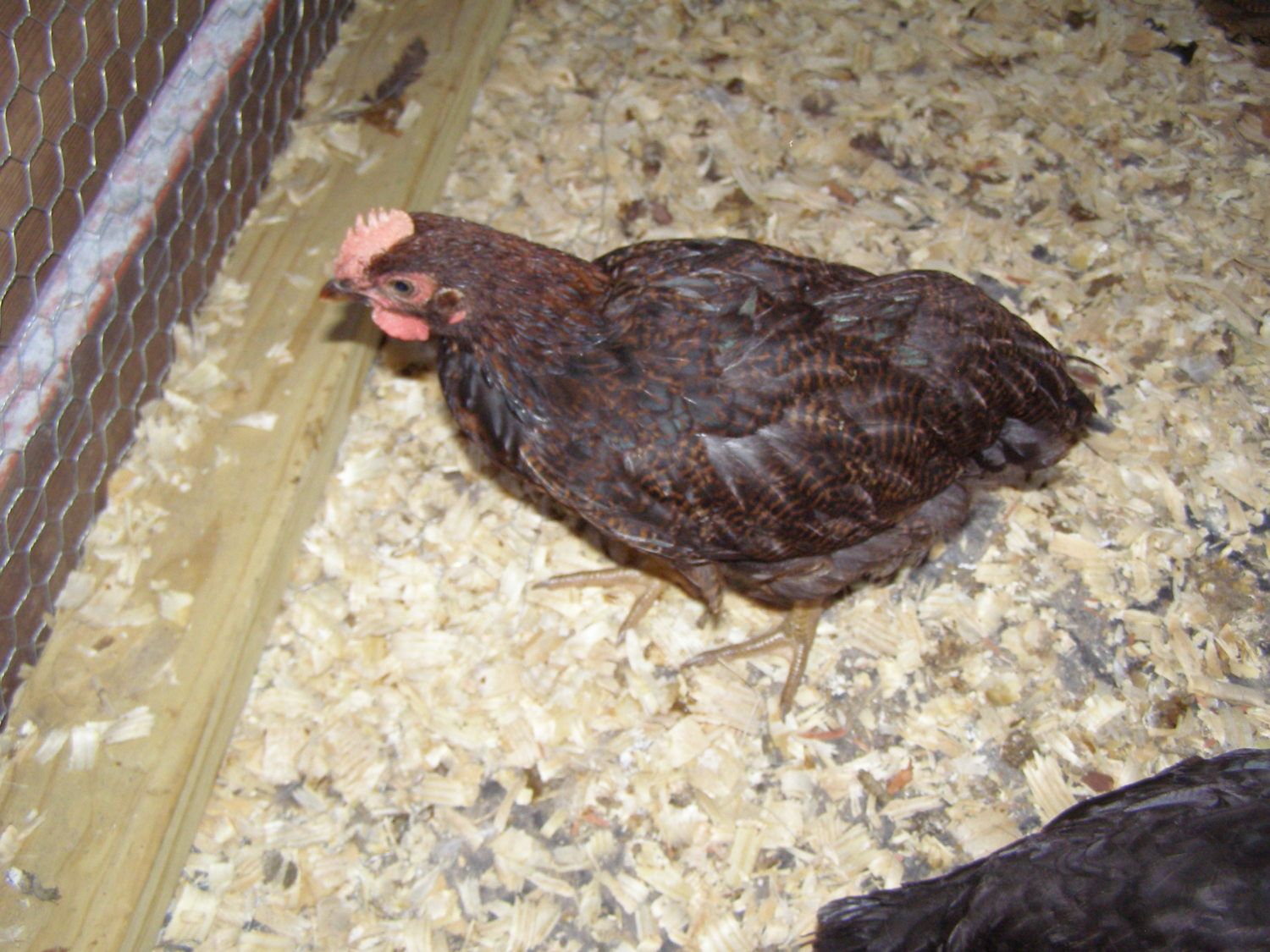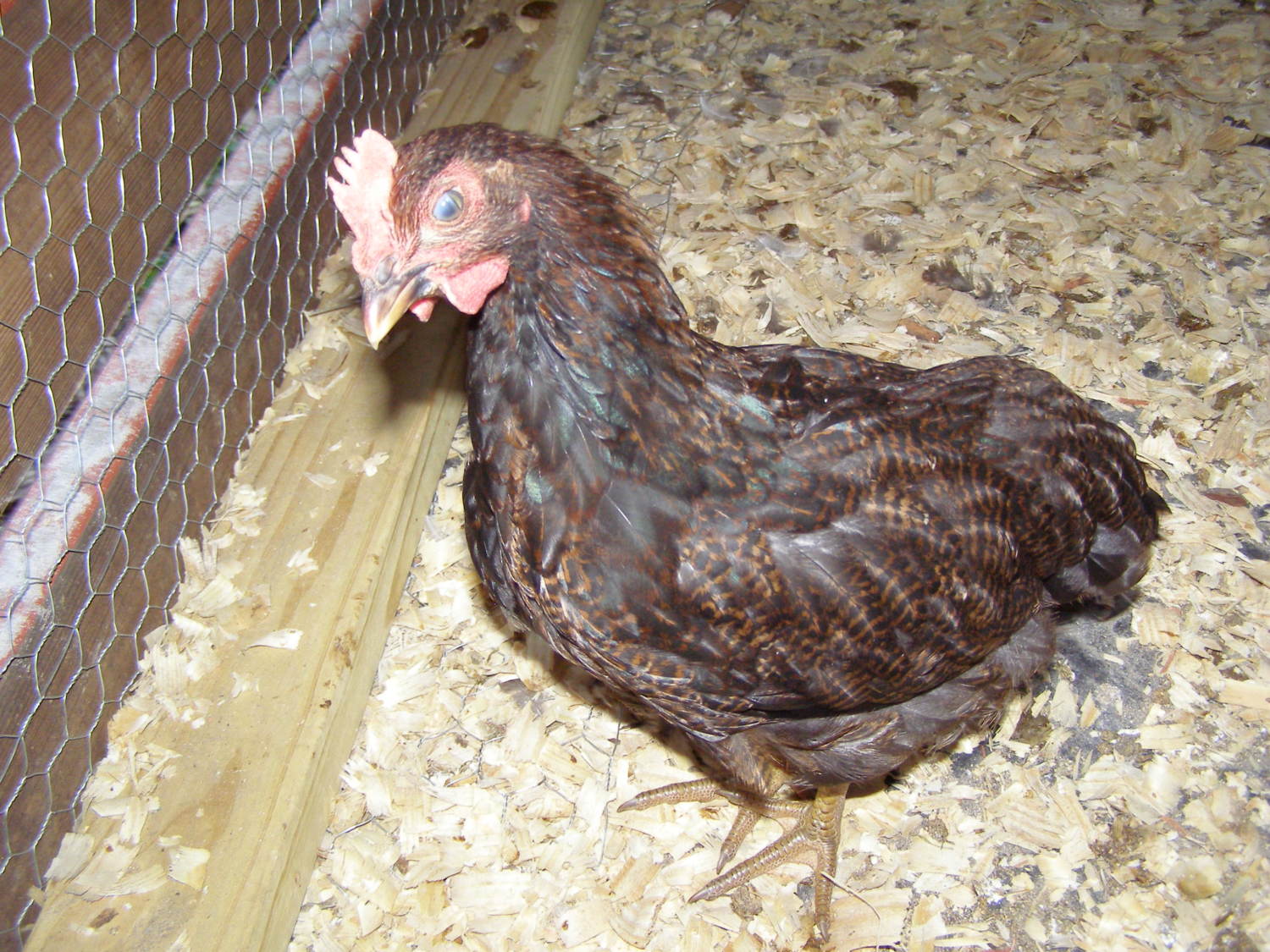 I'm pretty sure this is a roo even though he was supposed to be a she! Plus the other Partridge Rocks don't have this comb or wattles. Thoughts? Ok, so he/she looks possessed here!