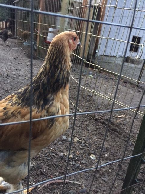 Buff Brahma, she/he is a little bigger than the others, typically out in front of the pack. Bought as sexed hen chick at Wilcox. Two pictures were taken in the coop, the other two outside, so the lighting is different, but they are the same chick.