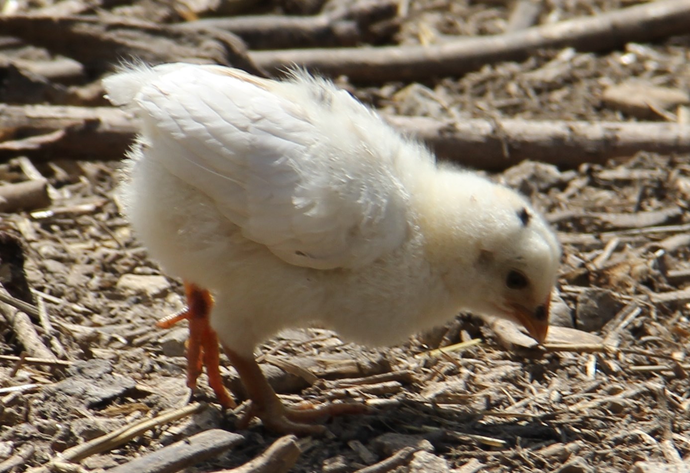 All black with white spot on head (BCM x Barred Rock): (3 days, 8 days, 15 days) - Pretty good sized tail