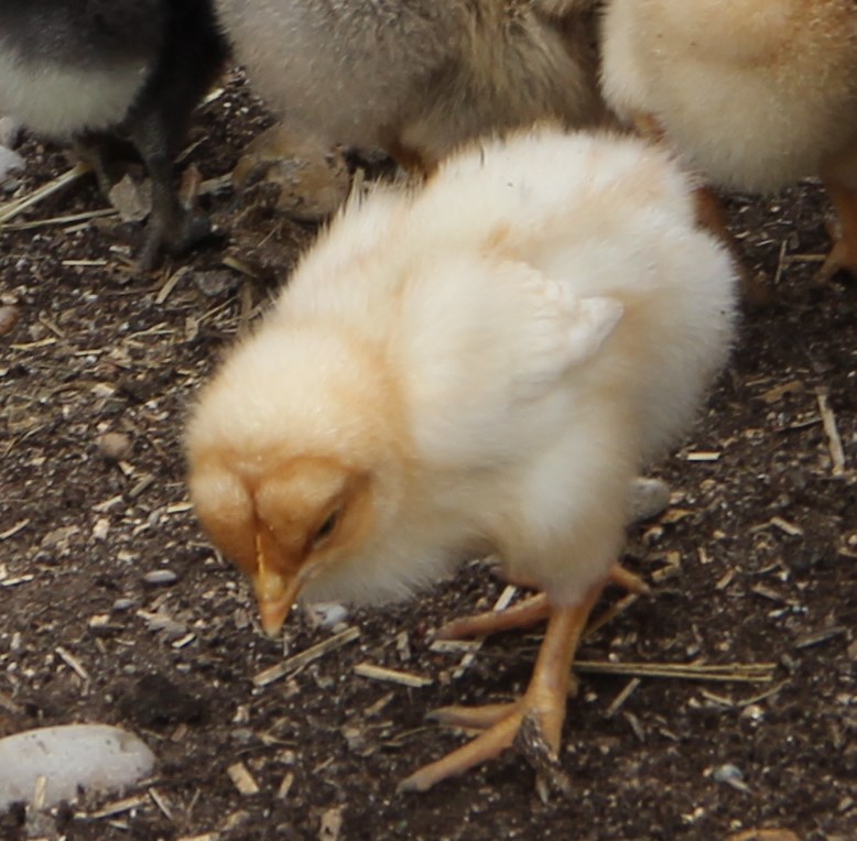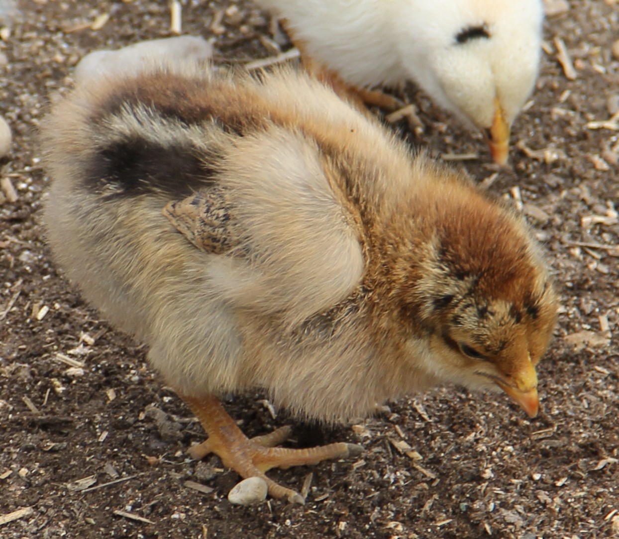 - 2 black chicks; 1 with a solid black head and the other with a white mark on top.