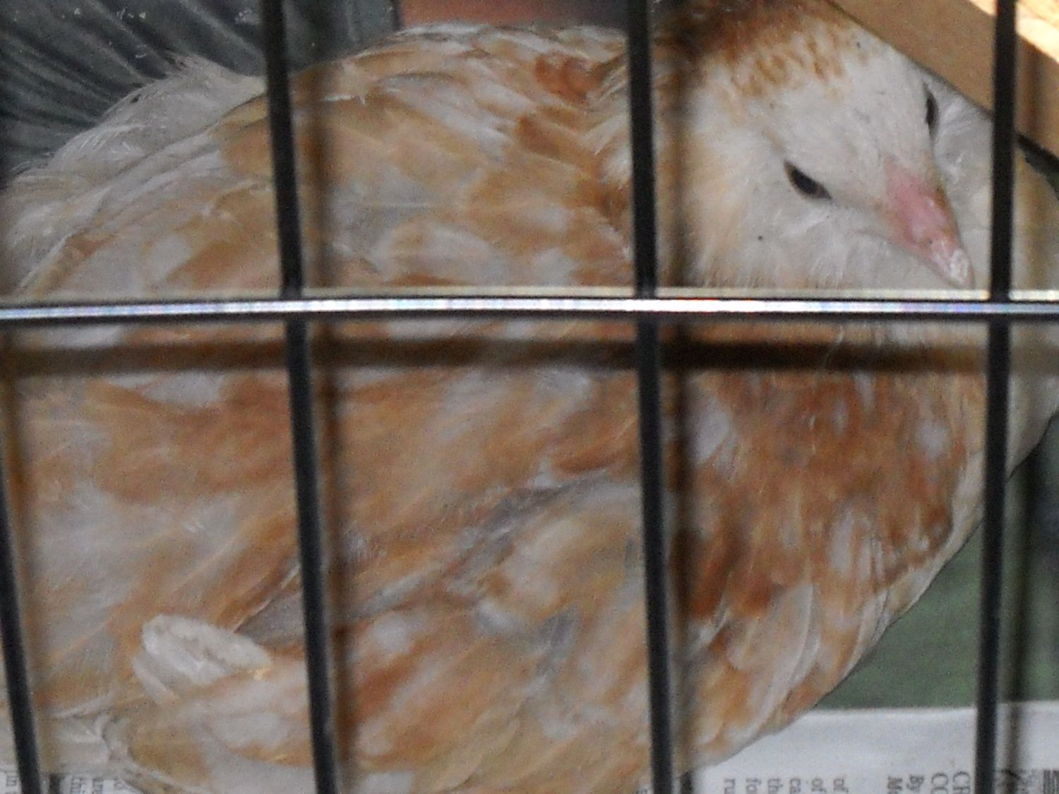 WHITE LEGHORN 2-yr hen "Bela" - a study in chicken wire