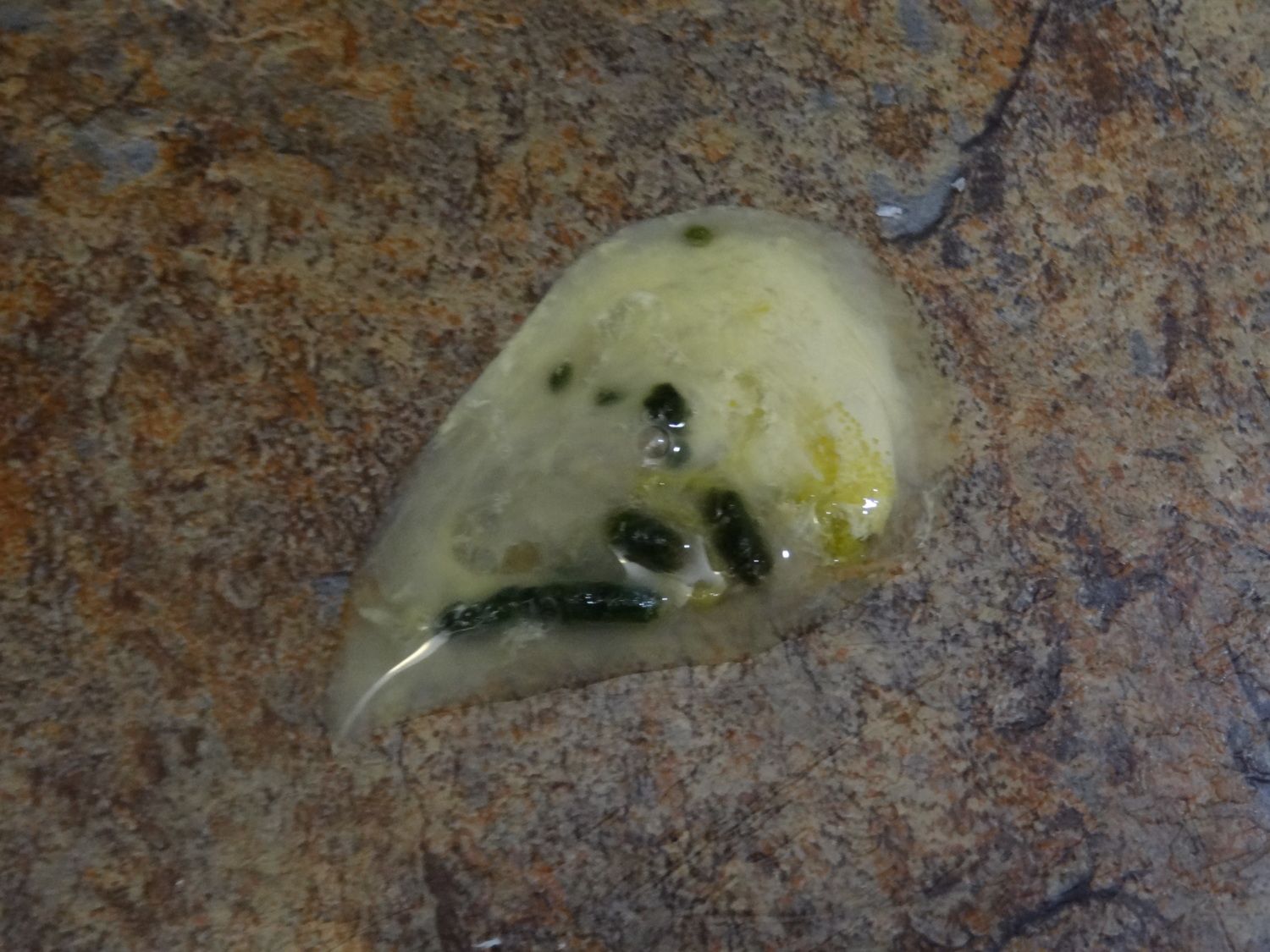 Her poop is all liquid and has these small black pebble looking things in it.