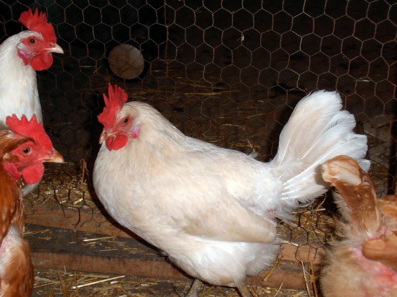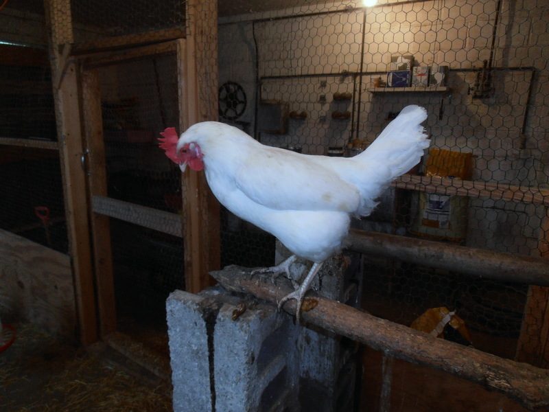 These four photos are of the chicken in question. The breed is Tetra TInt- developed for Tractor Supply (white chicken with brown eggs) It carries its tail different (High and fanned) and has grown longer feathers on its "ruff/mane" (don't know the official name) I am in the process of trying to "cull the herd" Out of my 8 hens I am only getting 4 eggs a day. I know 2 of them are 3+yo so don't lay very often and one is either 2 or 3 so I am fairly sure she isn't laying. I am thinking maybe this one has decided to trade teams. What are others opinions? I have separated this one to see if indeed it is not laying and so far -2 days- no eggs from this one.