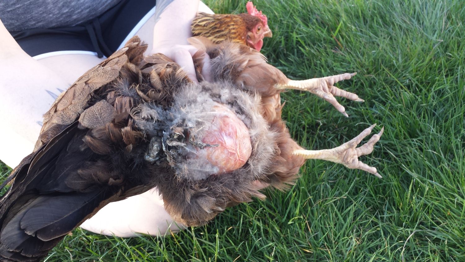3 year old Welsummer has a large bulge on her abdomen below her vent.