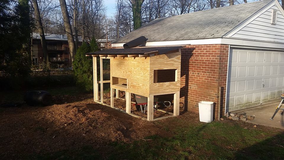 1. Bottom line up front: how do I prepare the plywood surfaces of the henhouse if using deep litter, to maximize longevity of the structure? The details: the henhouse is a 1/2" plywood box design on 2x4s. The box is built (see attached photo), roof is mostly done, but the insides are not yet done. Cutouts at 12" above the floor have been incorporated for the laying box and chicken exit, to accommodate the foot deep bedding used for the deep litter method, and then another hatch is cut lower that will be opened to clean out the composted bedding bi-annually / annually. Not all doors and windows are in yet, we're cutting those in next. Since we will have this damp mess of bedding year-round with the DL method, do I want to line the plywood floor with something? If so, what? Should I use a spare pond liner (heavy duty rubber sheet) that we have? Should we put down linoleum, or something else specific? Do I drill holes in the floor to allow bits or fluids to drop through? I don't know if I need it waterproofed or performated on the bottom and sides, to prevent rotting of the wood.