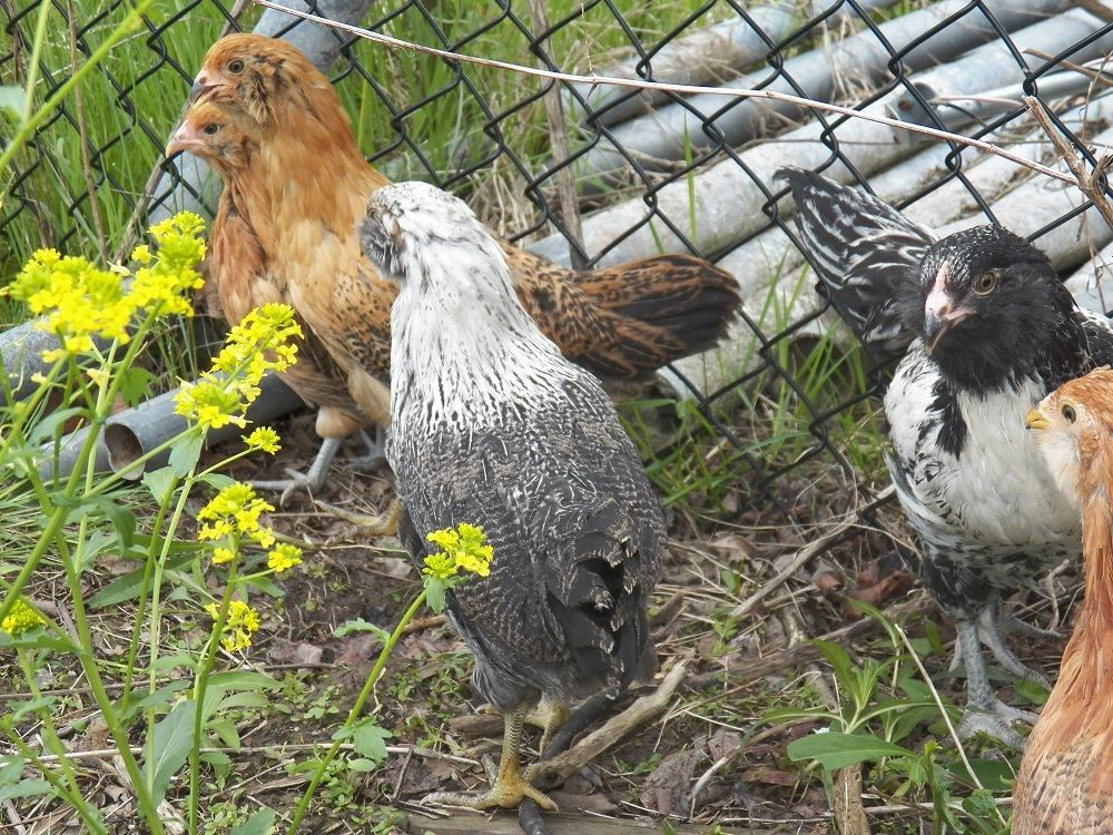I have new pics of the crew. I think I agree that they will be all hens. The one has a split beak? Not sure what else to call it. Any advice? She's made it this far, so I think she's okay with it. Could it have happened today? I just never noticed it before, but they always hid. It's their first day out and I had to push them outside and shut the door behind them. Just any comments on it would be helpful. Even as to what may have caused it.