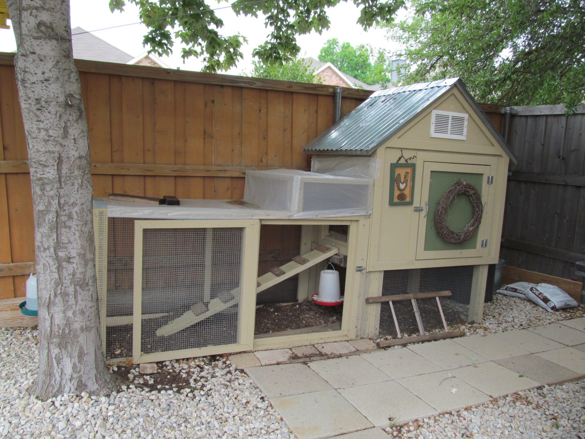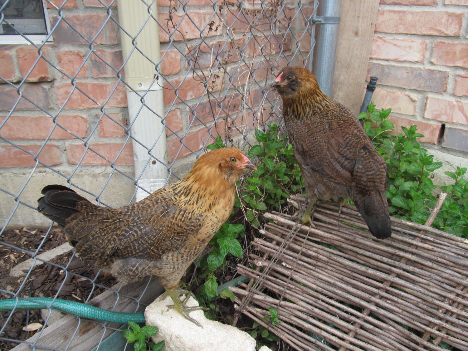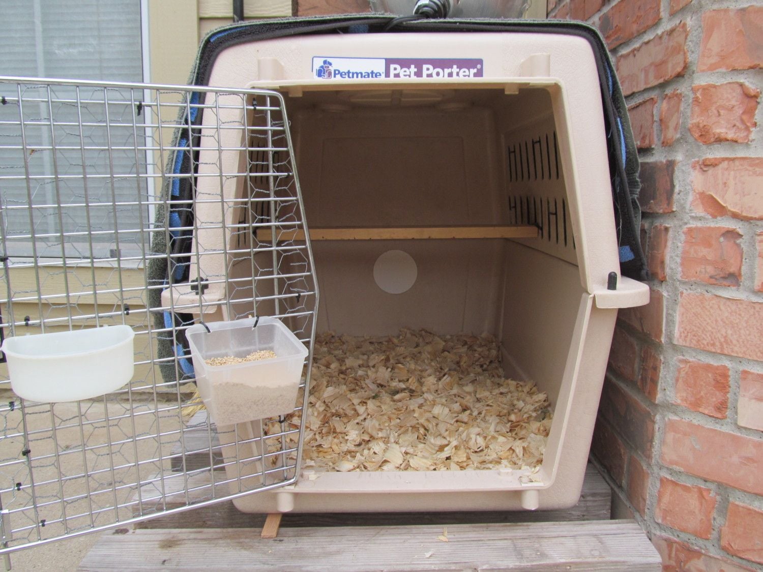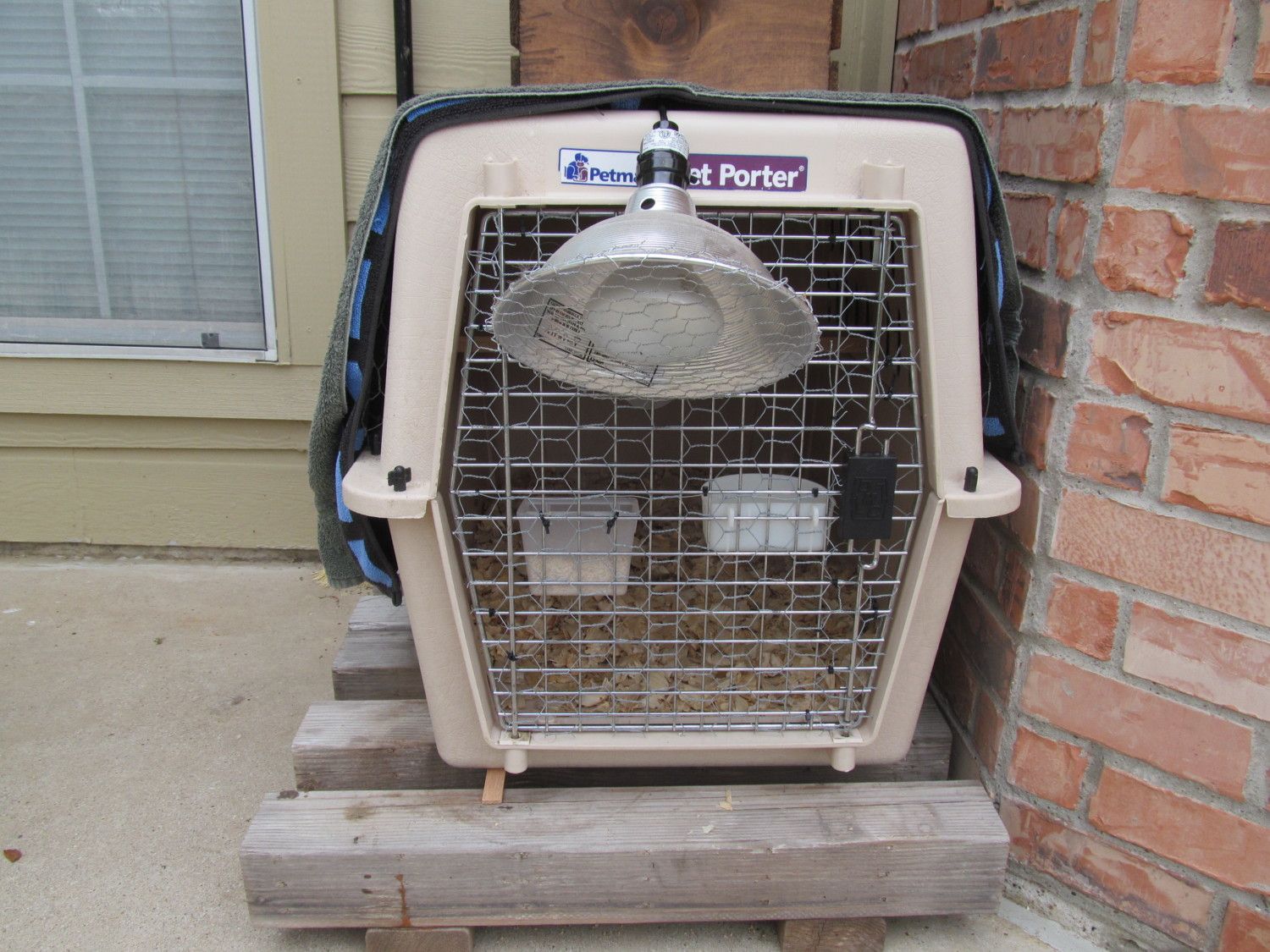 I have a large plastic dog kennel, the kind for airline travel. I am thinking of cooping them into it at night, but outside instead of in my kitchen. Would they be okay if the kennel is secure? I can't put them in with the big girls yet, I don't think. There seems to be too much of a size difference still. Plus, the one time I tried to introduce them, one of my two big girls pecked the teen chicken's head. So sad to see.