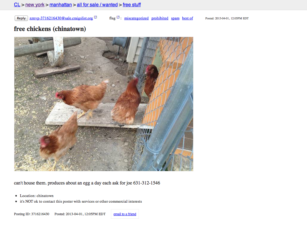 Apr 1, 2013 #1 goldeneggtees Fluffy Butt Nut 10 Years Joined Mar 11, 2009 Messages 1,599 Reaction score 6 Points 178 Location Long Island, NY On craigslist, see here… http://newyork.craigslist.org/mnh/zip/3716216430.html