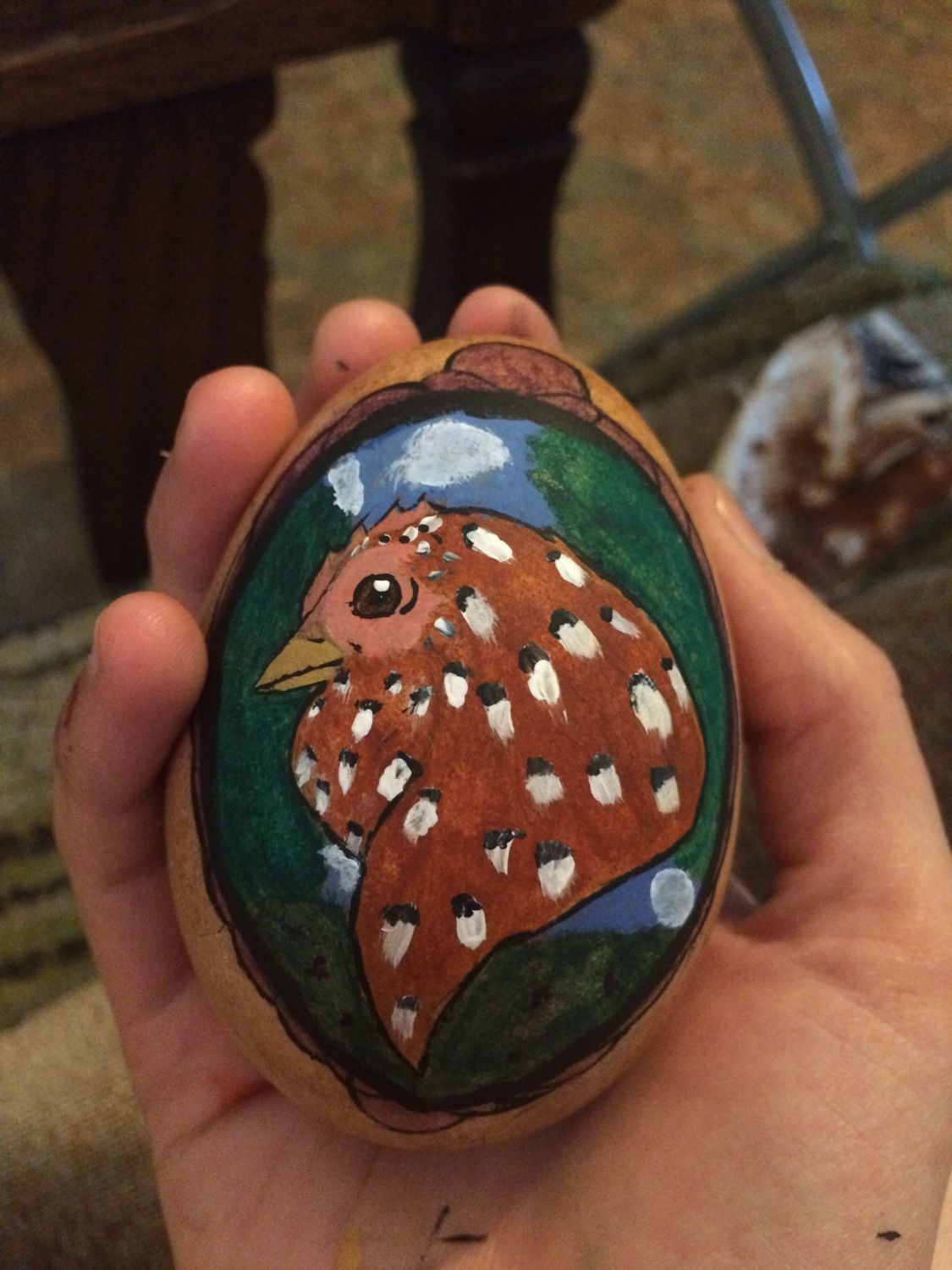 I am a small time artist starting to work on what she loves most, painting eggs! I am still working on my skills but each egg posted here will be sold once sealed and ready to be hanged on one lucky person tree!