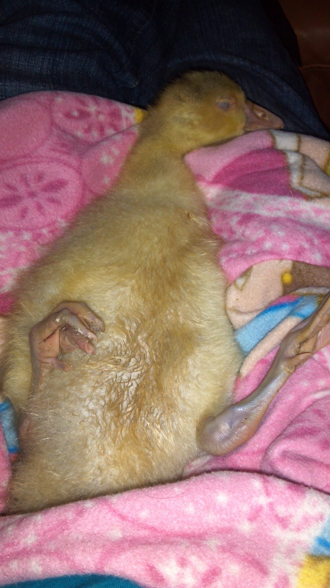 So far I am referring to her as a blue splash. Won't give a final color until she feathers completely though. The little white capped gander is one you chatted with me through helping hatch. Can't remember what nick name you gave him though.