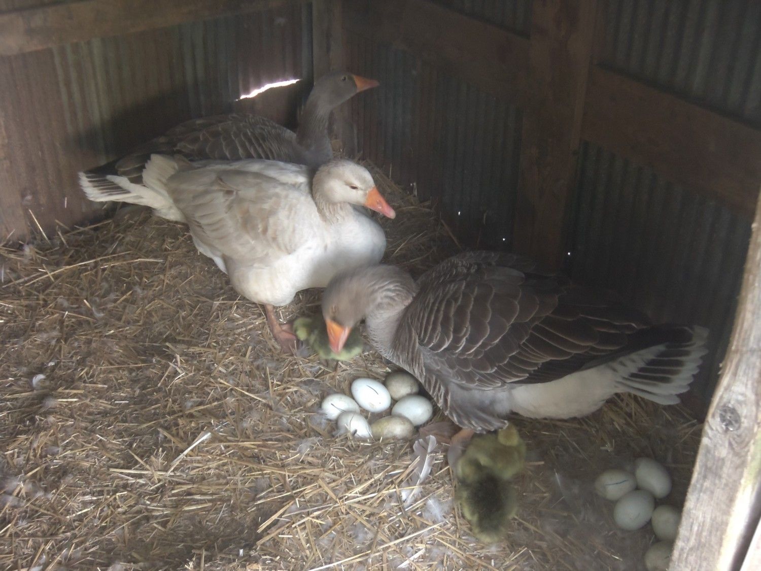 That would be a cute pic!They were having anger issues...they were hurrying (sp) the babies to the other back corner until I talked to them and told them it was me instead of DH. Then they brought them up to me and showed them off... I love my Geeseys!!!![]()