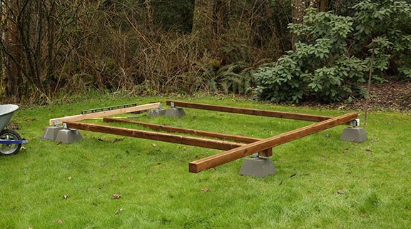 We placed it so we can still mow around it. DH wanted to use pier blocks so here are the first steps on initial layout and positioning of the structure. We didn't get far this first day due to having to work around down pours.