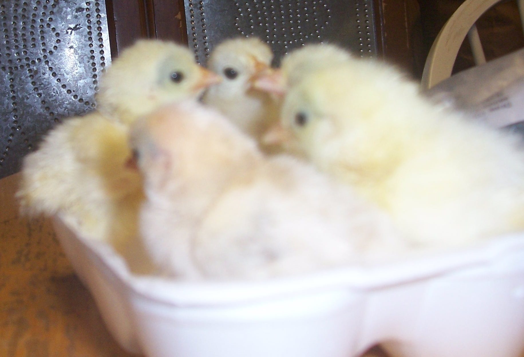 Gotta love the balls of fuzz. Just about the size of a ball of lint, and almost as fast... (have you ever noticed how fast lint just magically appears?) That's a LOT of Delaware bantams.