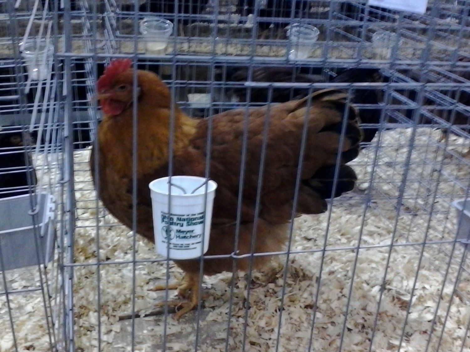 Yesterday I went to the Ohio National Poultry Show in Columbus, Ohio. I did not show but thoroughly enjoyed my time as an attendee. I heard there was almost 6000 birds entered and 501 exhibitors. The biggest show that I had ever been to and maybe a little overwhelming but still a great experience. A couple things of interest that I noted was the Champion American Class - a New Hampshire cockerel exhibited by Guy Roy of Massachusetts. He also had reserve breed with a pullet. Note the pics..they are not great as they are from my phone. The males were the nicest NH's that I had ever personally ever seen. Allen Smith was there..very approachable and a pleasure to speak with. Too much to list. Anyway, That was my quick recap.