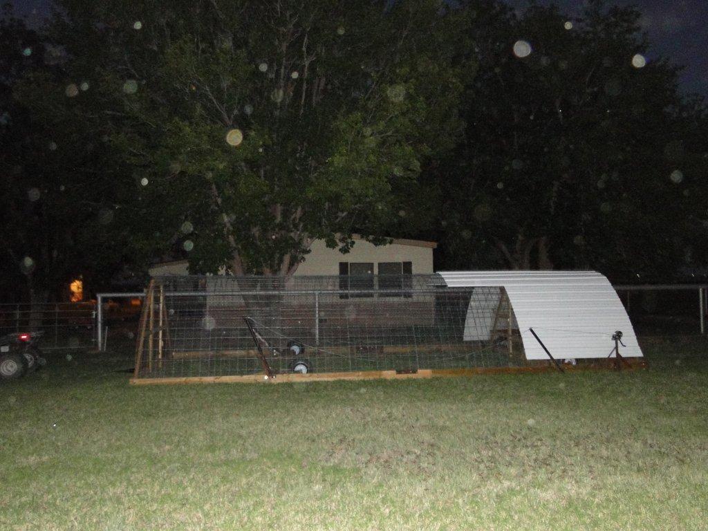 How do you make the hoop houses 13' wide? Two panels attached in center? ThanksMy mobile hoop coop is going on 3 years old with no problems. It's 13' wide and 32' long(used 6 2x6's for the bottom frame), about 7' tall in the middle. It is a bit too big to easily move around the orchard, so it's getting retired to open pasture to grow out meaties and start chicks. It has cattle panels covered with chicken wire.