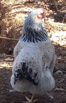 Here is the worst from last year ... she makes a great example. I think she had a couple red feathers that popped out just before she reached POL last year. This summer, she molted and now looks like this ... (bad photo, they're free-range so I have to sneak up on them, and getting the lighting right is tough with an iPhone) ... her new red feathers look silver laced red? Ish? There are a lot of things I like about her, but clearly that color isn't breedable.
