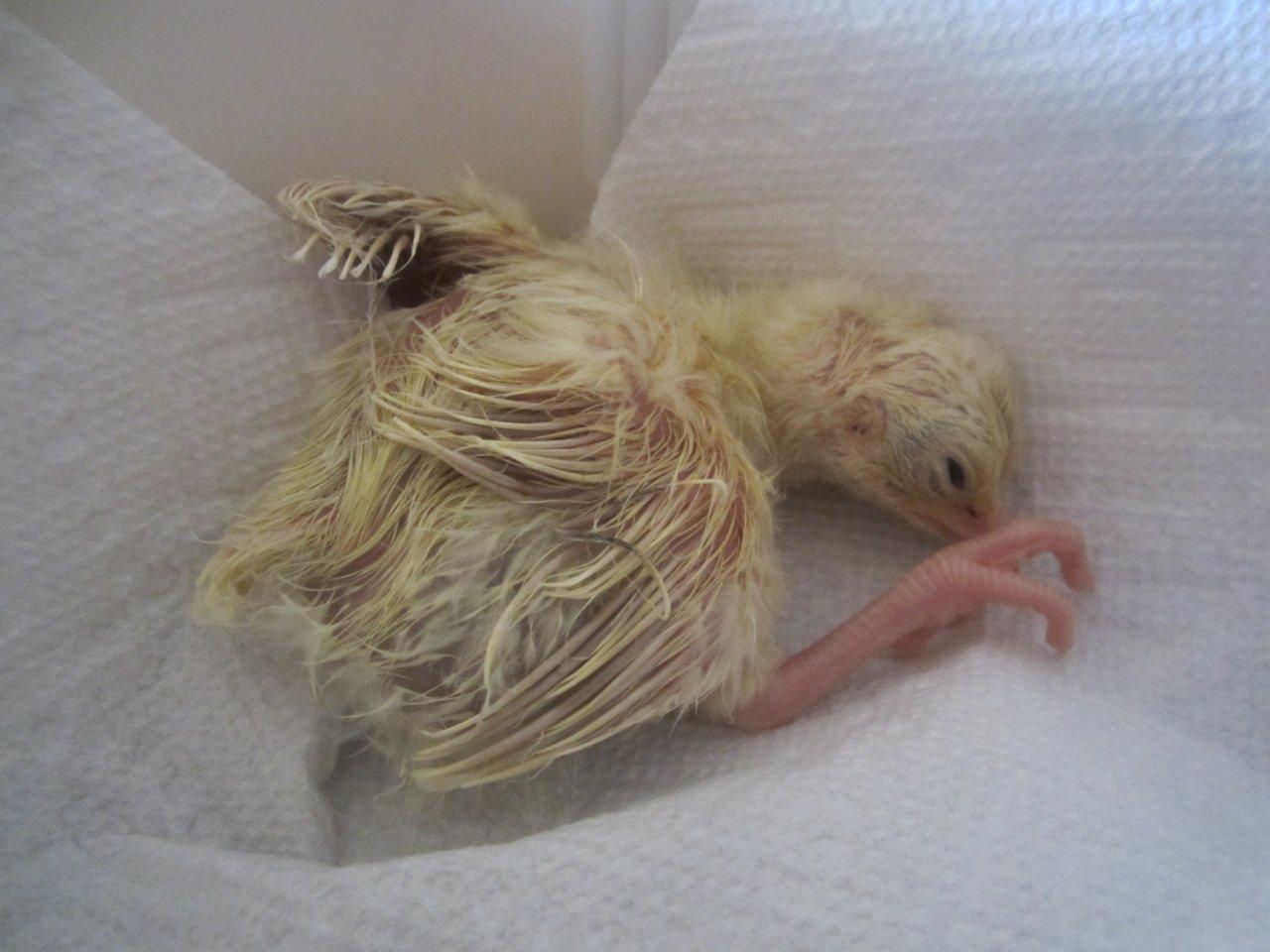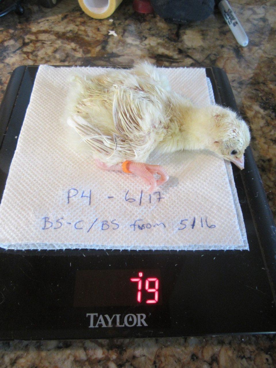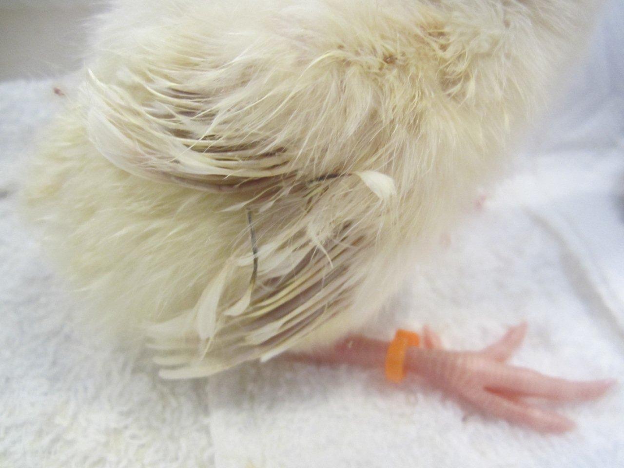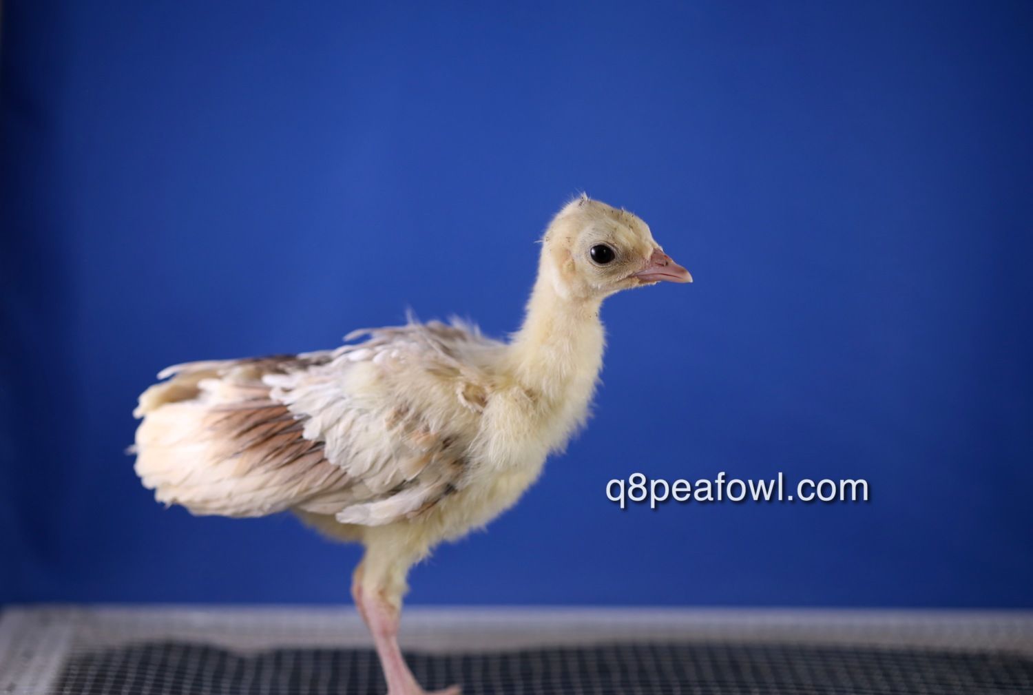 Few days old chick, they start almost white then they start to get their dark feathers after 2 weeks, i will post some updated pictures for them later.