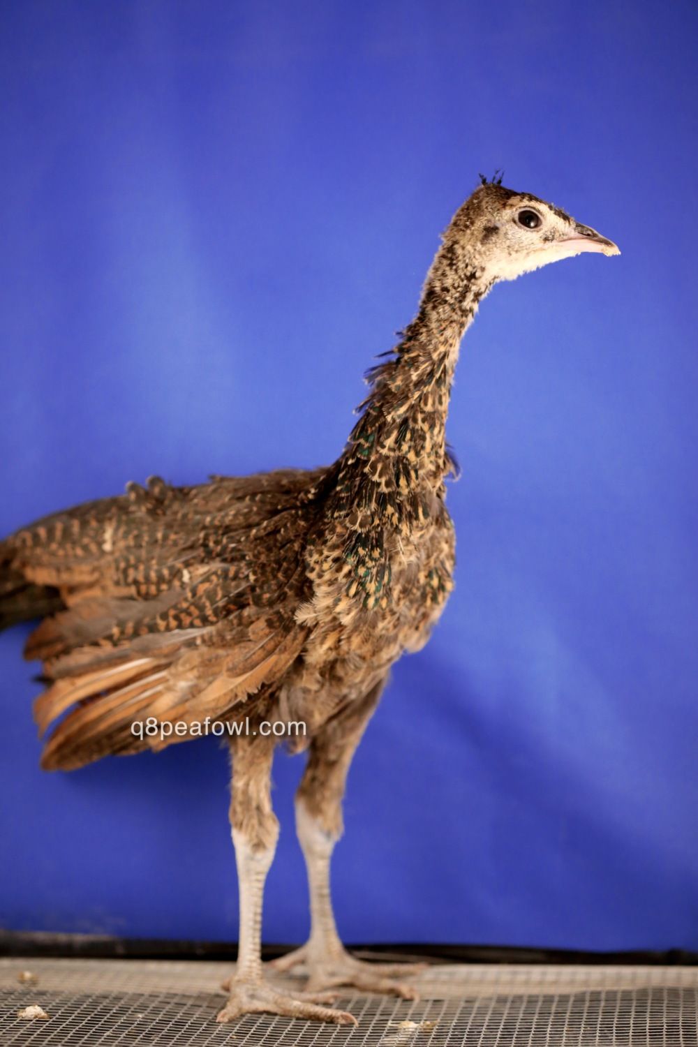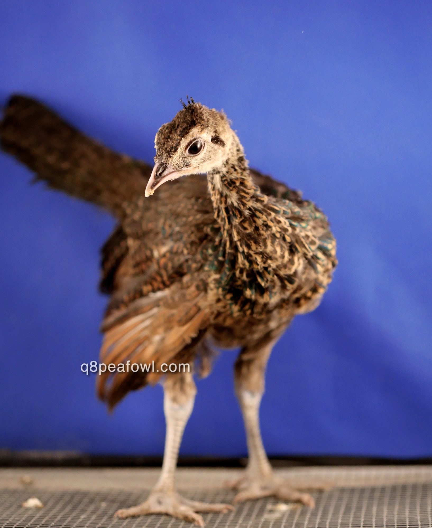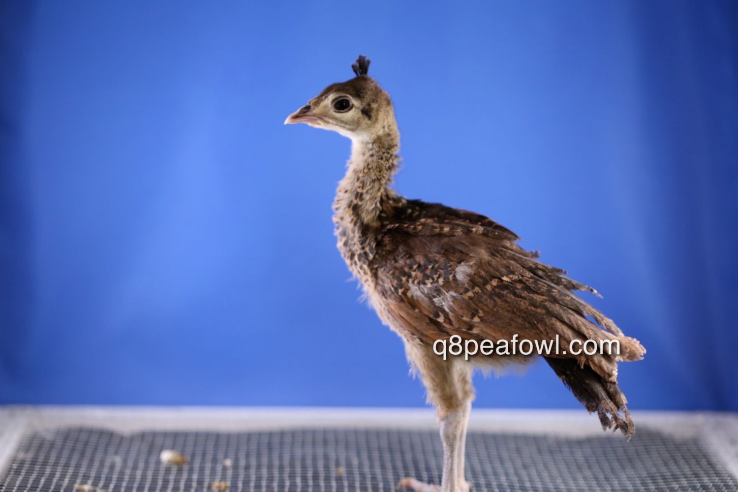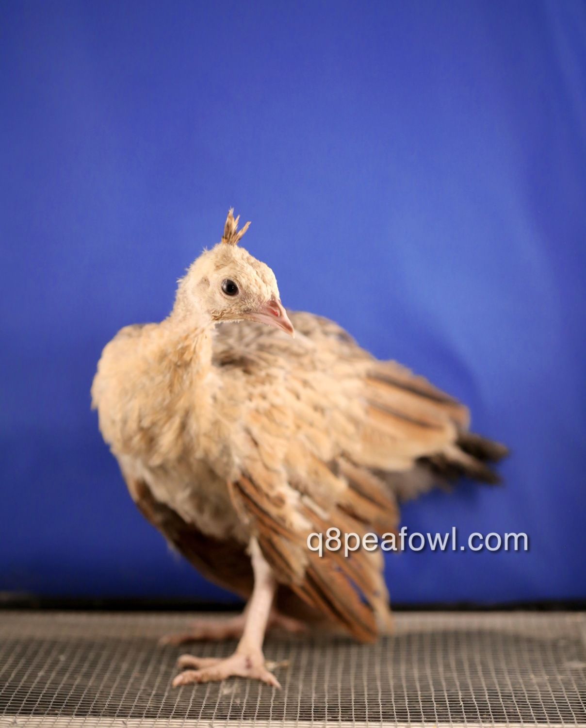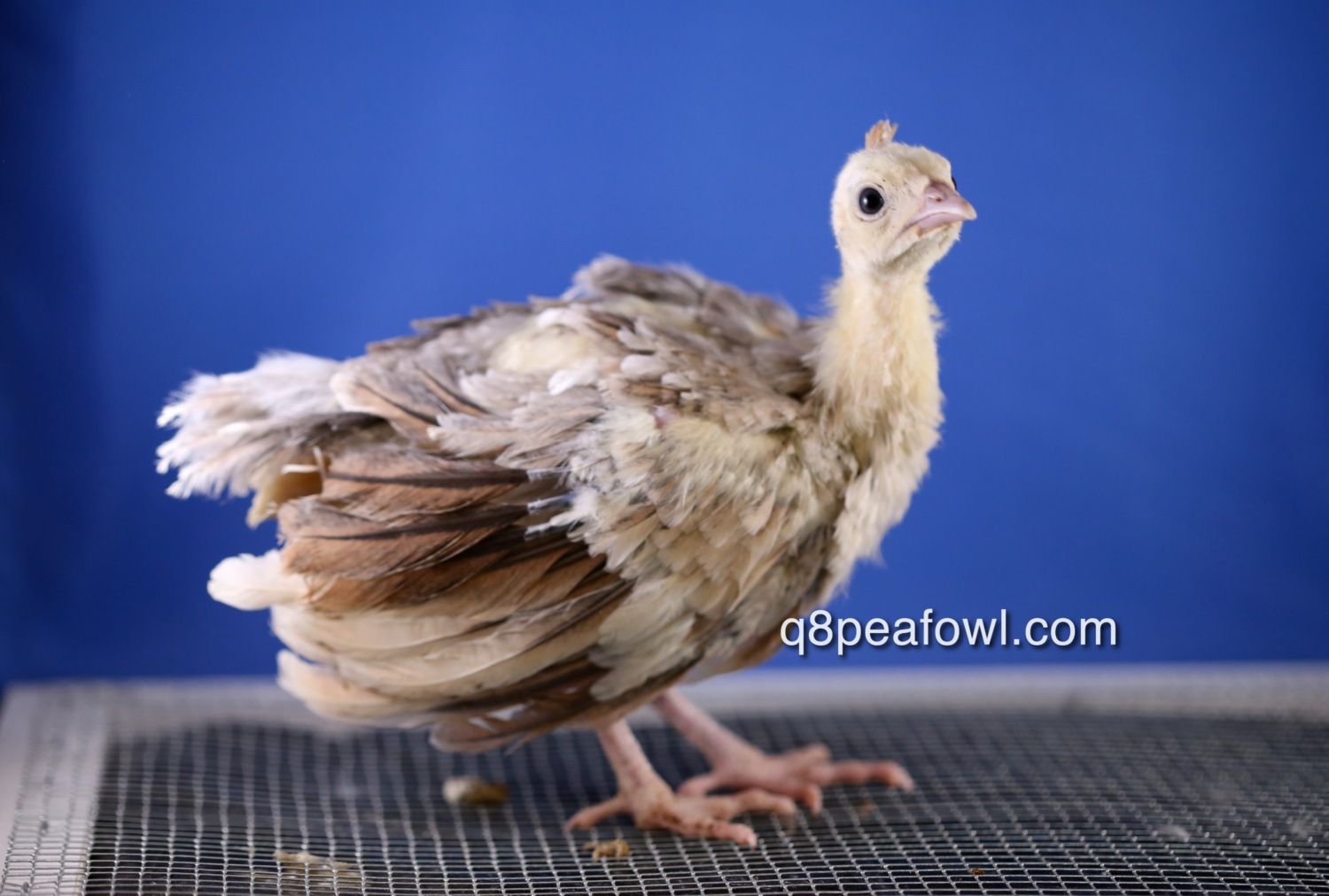 Few days old chick, they start almost white then they start to get their dark feathers after 2 weeks, i will post some updated pictures for them later.