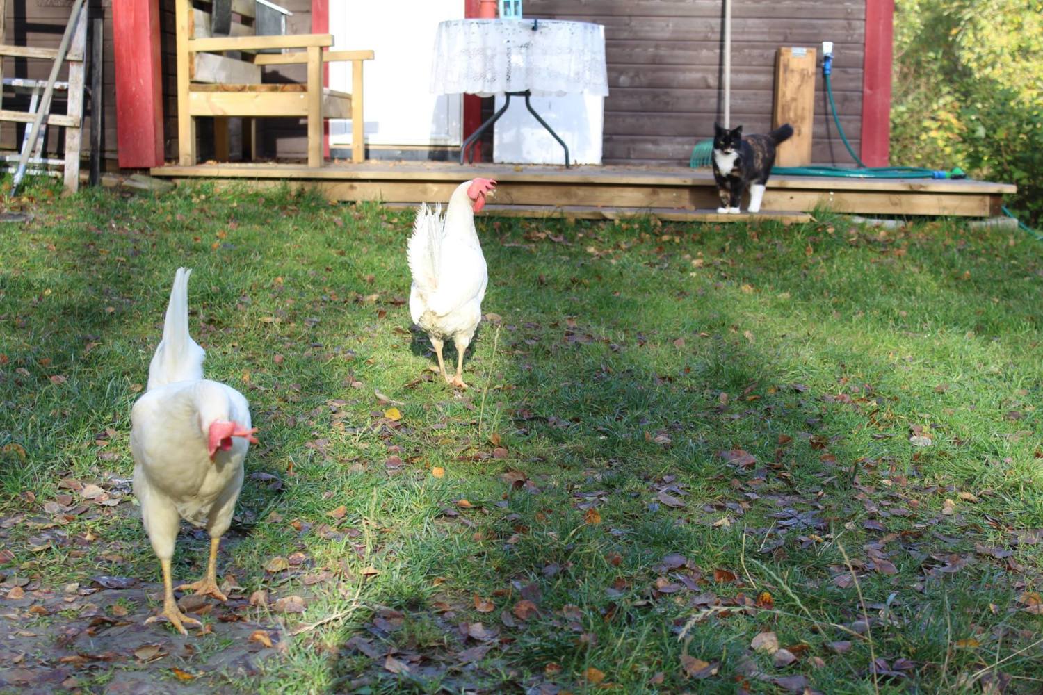 Our feathery gang consists of 3 white italians, which we got from an egg-farm on the countryside. They are one year old but are still super productive! They never stopped laying when we got them, so the first 10 days we got 29 eggs!