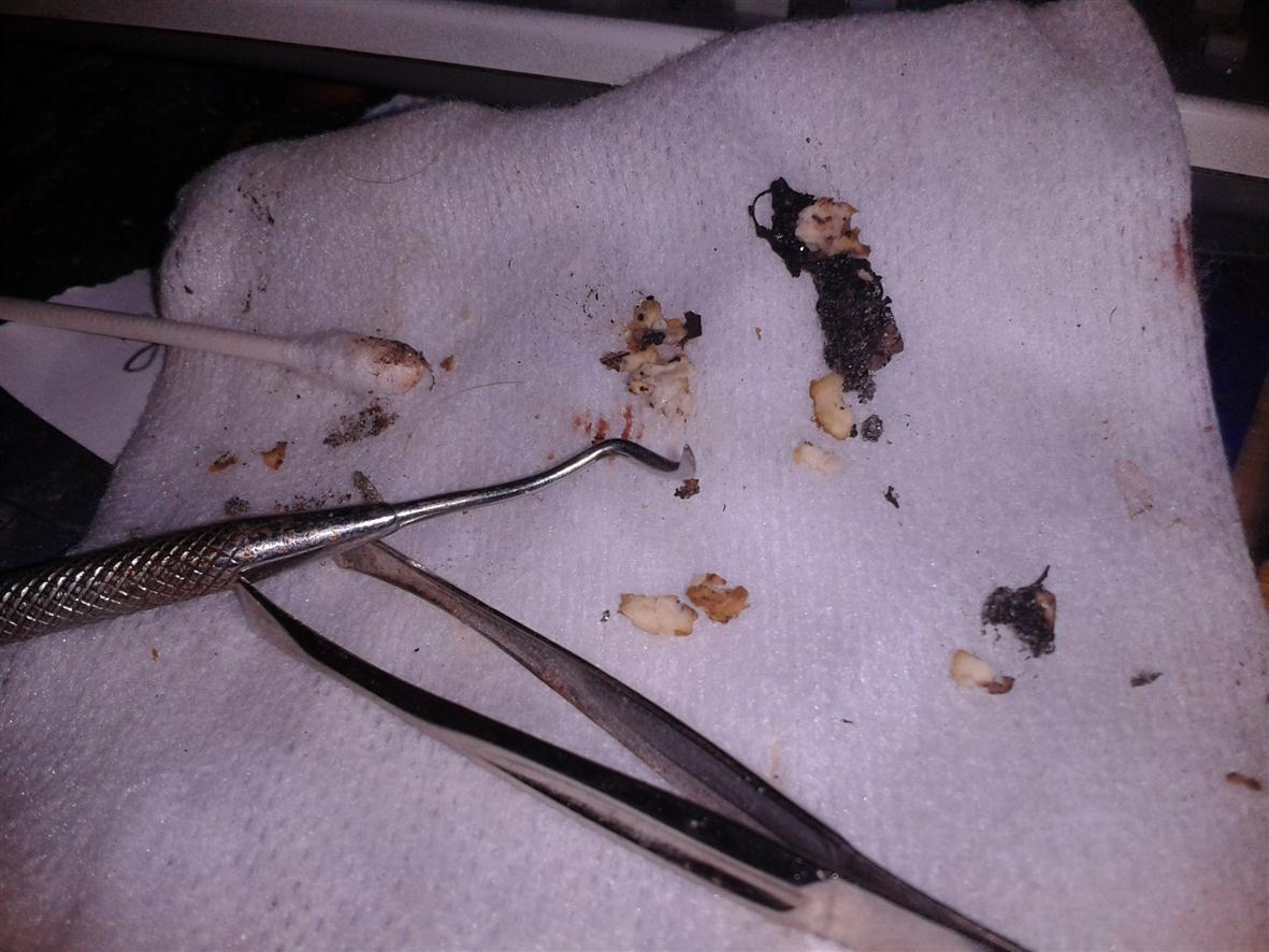 Hi and thanks for the reply. Well, i've watched her struggle to swallow long enough. I know at this pace she will get dehydrated, lose too much weight and lose her spunk, which she still has in good amount for now. I got a towell, burrito'd her and decided to get forceful enough to take a really good look into her mouth and from what i have seen and read, there is no more doubt that it's canker/Trichomoniasis. My biggest problem now is trying to remove enough of this yellowish cottage cheesy stuff so she can swallow again. she HATES having me into her mouth and jumps around very unexpectedly, causing me to have a LOT of trouble trying to grab this stuff with tweezers. i have been trying to scrape and dislodge it with a dental pick, but i'm afraid if she jumps at the wrong momment i could severely injur her, and that isn't the point of this exercise. the q-tips wont nearly touch the stuff, but after i slice and dice tiny bits off, i use the q-tip to bring it out of the mouth. for a sickly bird, she won't sit still and has plenty of vigor left. i just want to get her back eating before that changes. Does anyone have any idea on how to remove this stuff safely? Also, looking at the external swelling of her lower jaw and right side of her lower beak, it seems like there is also another secondary infection going on that tylan 50 hasn't been helping. I am now suspecting some form of a staph or other infection that isn't affected by tylan. i found some doxycycline around the house (again, 5 years old) and from what i am reading, 75 to 100 mg/day would be recommended for a 4# bird. I powdered it up, along with 150mg of metronidazole, 2 drops of metacam, mixed it with grape juice concentrate and used a dropper to give her about half of it so far. i know being unsure of what i am doing is not a good thing, but i have no where else to turn. i very much dislike experimenting, but short of getting into vetrinary school for 3 years, i see no other alternative. i have no work and very little money, so another vet visit is really out of the question. i also