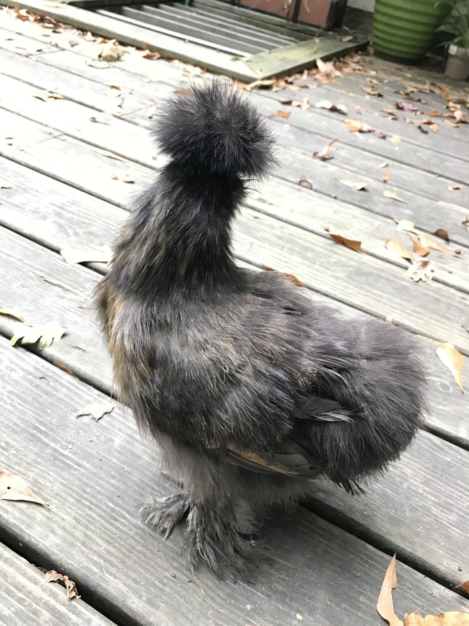 We (my husband and I) have been lurking around we are not very big post people. I wanted a silkie and finally after almost a year we got one! Pretty sure it's a pullet and pretty sure it's partridge color? Not quite sure on age the breeder is rather old and has many many many chickens to care for, said maybe around 3-4 months since hatch date.