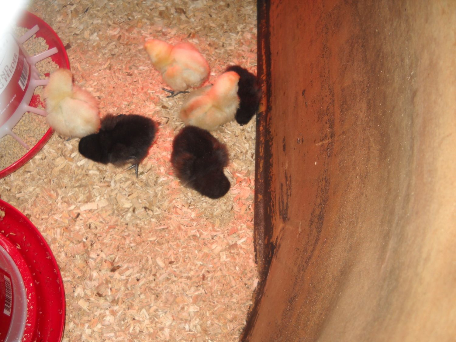 The lightest Bantam is Ariel and she is over by the feeder, the darkest Bantam is Dutchess, and the other one is Annabelle (or Arnold because it has a big fluffy comb so it might be a rooster?) The smallest Pullet is laying down, thats Twilight (no not because of the movies >..<) the biggest one is Tank, she is also laying down, and the Pullet closest to the feeder and standing up is Trixie. EDIT: I just learned that pullets are female chicks, so I have no clue what the black chicks are then, and I don't even know what Bantams are, if there are different types or somthing! HELP PLEASE! Thank you :3