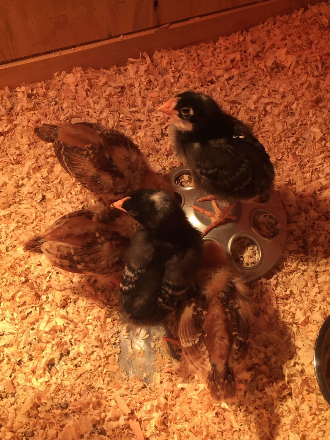 We have five chicks born 5/4/2016. Since they are out in our garage we've got them on Ustream, you can take a peak here.