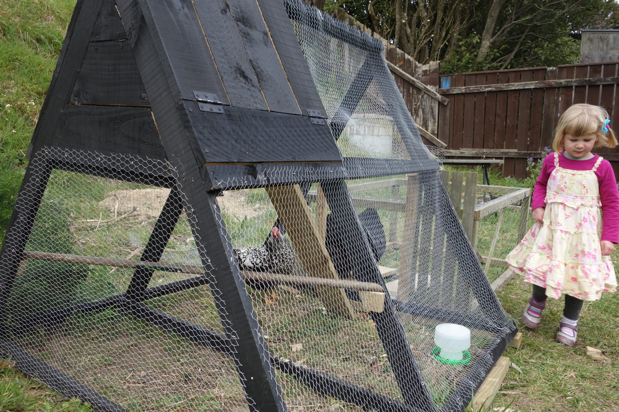 My name is Andrea. I live in Wellington, New Zealand. We got our first chickens two weeks ago and I know very little about looking after them. This forum was recommended by our seller in Hutt Valley, and I feel it will help me feel less lost about what to do. My husband made our chicken tractor over the winter, though we're planning to make a real coop for them in the future, once we start creating the gardens.