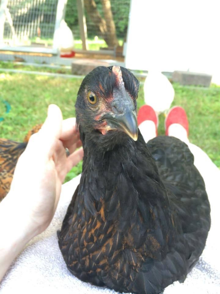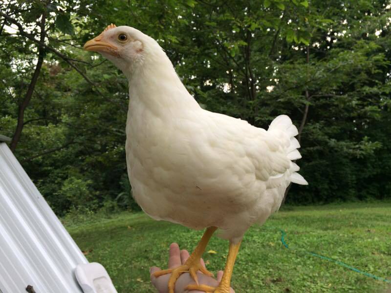 Hi, I'm new to BackYard Chickens. We started raising 4 chicks just for fun - a one-month project that was supposed to end at the beginning of July. We were surprised to find that we really loved the chicks - each one has a different personality and they love snuggles and attention! So, we decided to keep them and are now in the process of getting a coop/run set up. Our girls (hopefully all girls!) are Clare (white), Cricket (black sex-link), Mocha (easter egger and might be a roo), and Acorn (RIR, I think). They were all hatched June 1.