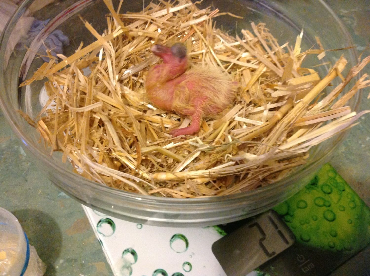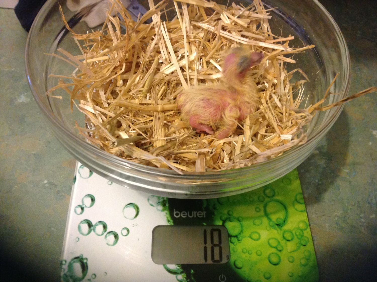 . I went and mixed up some breakfast and got everything ready and when I got back they had swapped sides and dad was feeding it. Then he tucked it back under him so I took it out for its weighing.