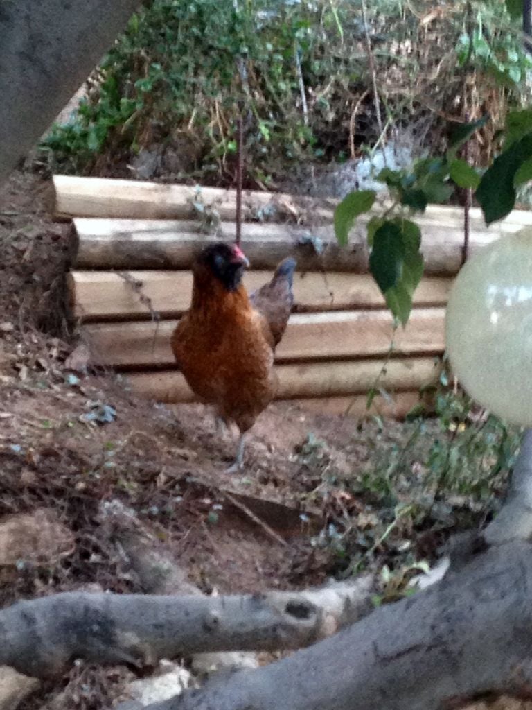 Anybody got an idea what this vagabond might be? Flew into a friend's yard. She is the edge of a residential area with orange growers. She put up signs and got one of the orchardist to take it in. I couldn't quite find anything that fit this bird. Obviously, she's flighty! The feathers are penciled like a barnevelder and the comb is like it's melted down the front of the face with not wattle to speak of. What think ye?
