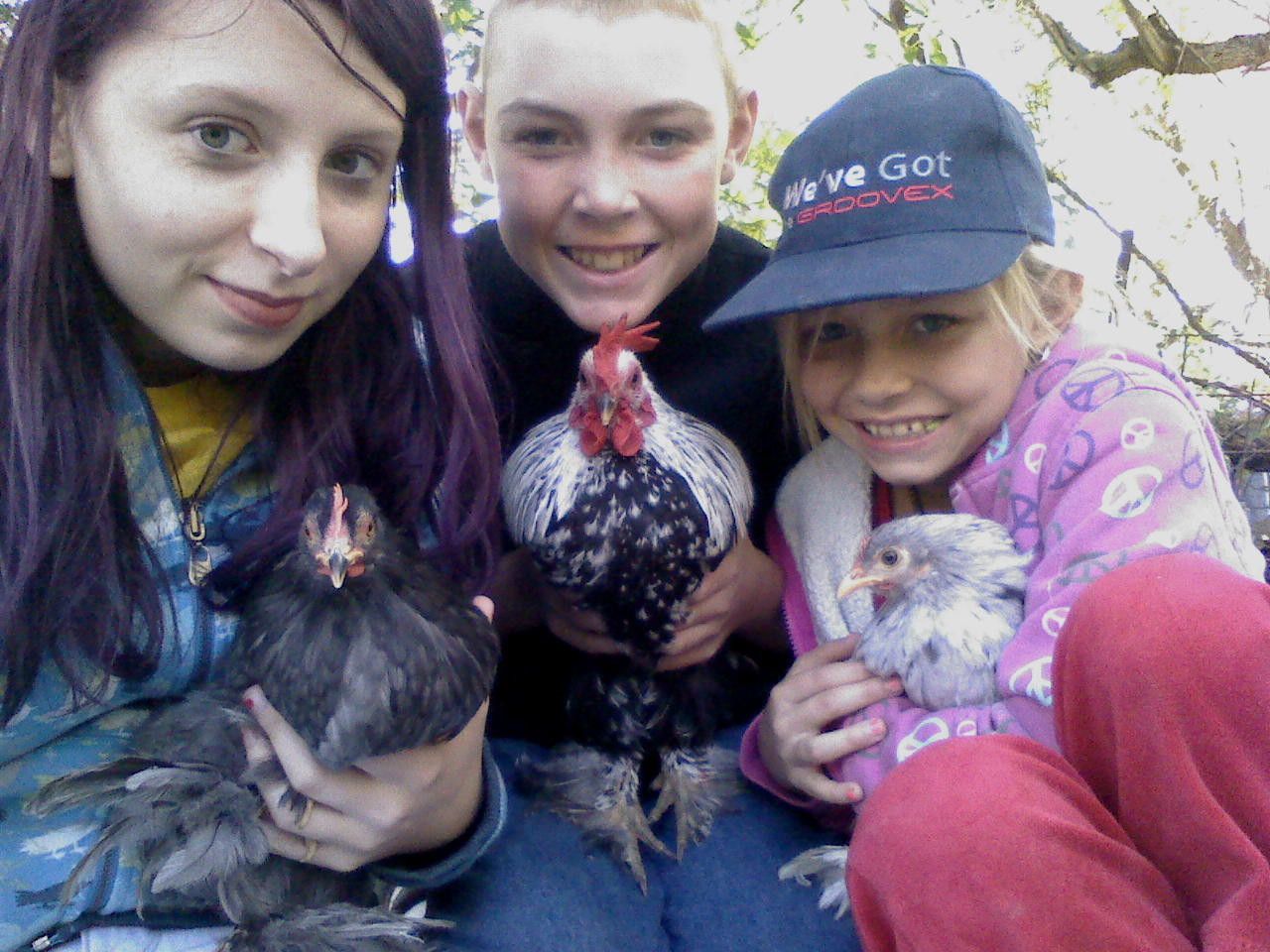 Chickens names: Pärla, "No name", Mirakel and... "no name" (the one on the foot ;D)