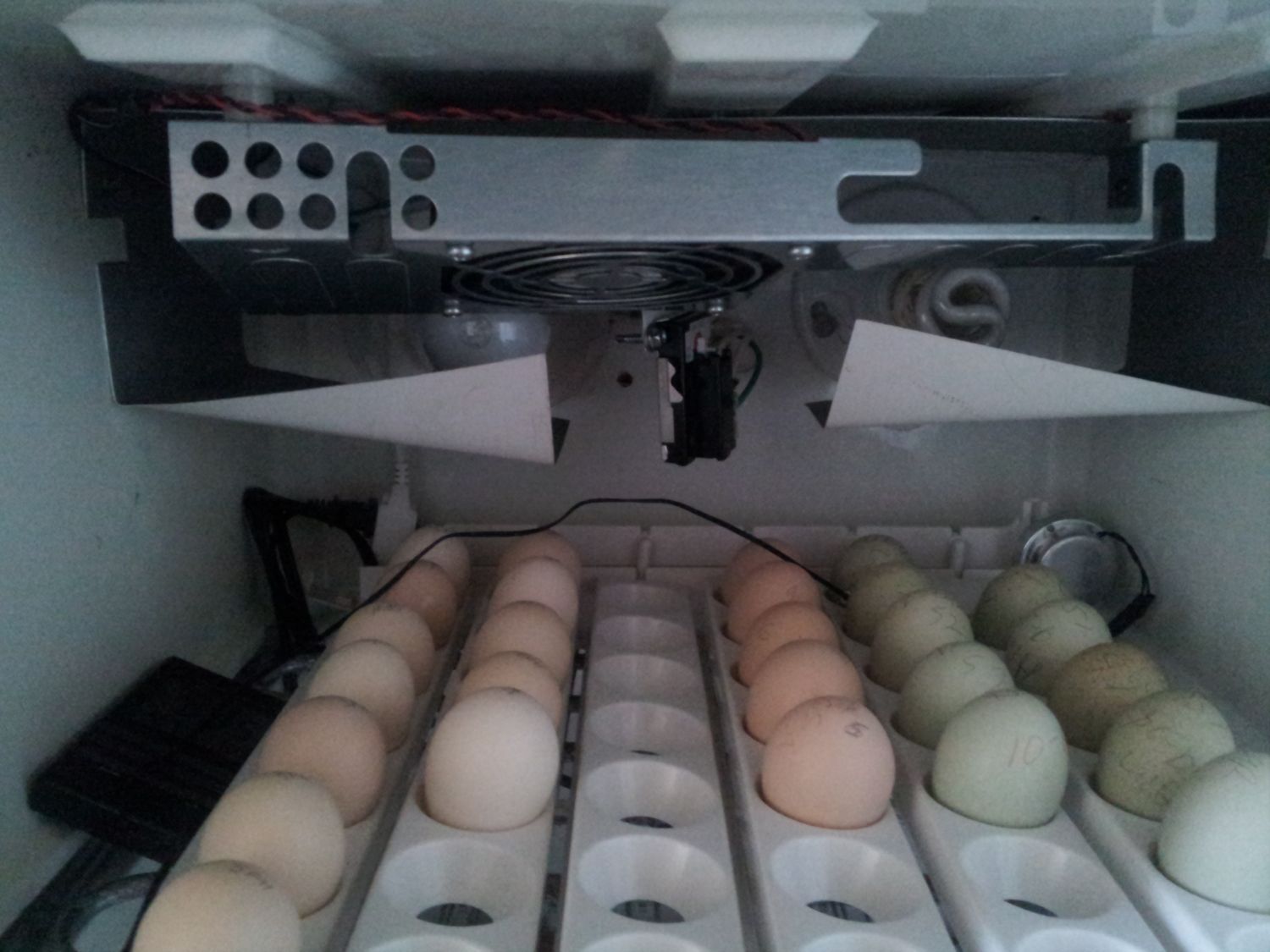 Yes it is facing silver side out the t-stat is 1-2 inches away from the light.The temp goes up to 100 before it cuts off.I have 4 vent holes,two are covered and taped.I changed my light to a 40watt its keeping it at 100 with all vents open.I will try to get a lower watt bulb in the morning.But the T-stat or light does not come on.Right now its like a still air.
