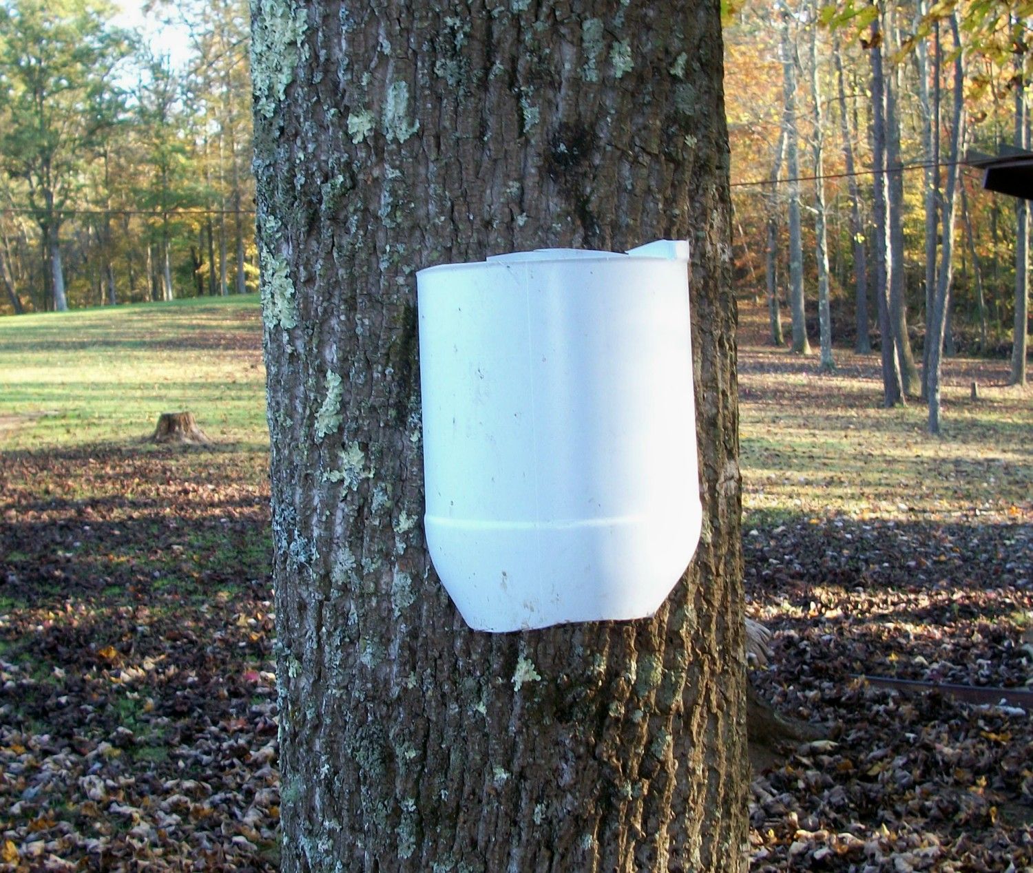 Sure can, though it doesn't really show how they are attached. When you cut the bottom out of the jug, it helps to leave a broad "tab" extending over the edge of the cone so you can have an easier time nailing the jug into the tree. I use roofing nails because the heads are large and flatter, so they don't pull through plastic very easily, but a person could use a regular nail and a washer to get the same effect.