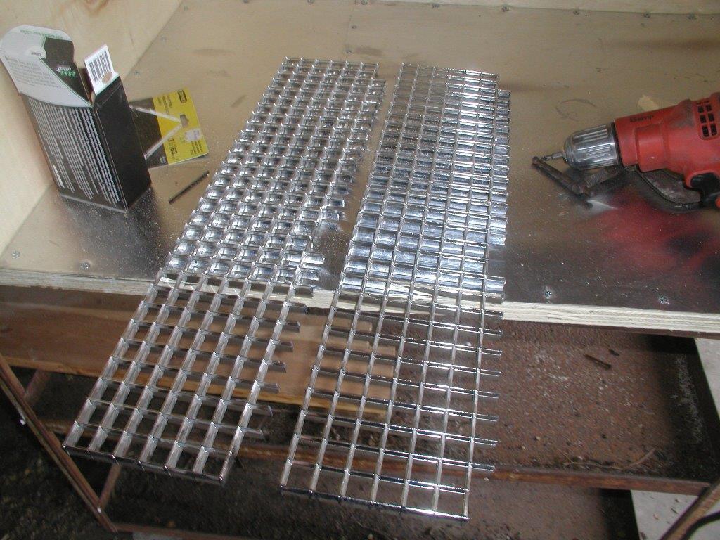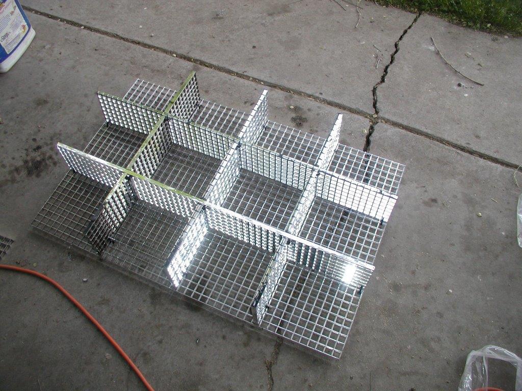 You can see two places in the long pieces that I have cut half the row out so another piece will go down between here. It will look like a tic tac toe board when put together. I used zip ties to hold it to the floor piece and also where the pieces meet. It actually is very solid and high enough that the most althletic peas won't be able to get over into the next compartment.