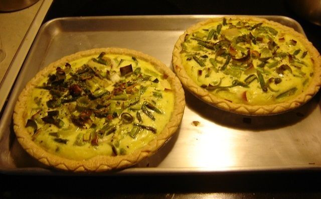 Accck!! 2 days ago I had a crap up the kitchen day. Ever have one of those days when you open the fridge and get an overpowering urge to purge? The fridge, not the contents of yer stomach (Probably not cos yer saner than me). I spent the previous couple of days cleaning up broken branches from the ice storm last week and had neglected cooking. I looked in the fridge and noticed all the fresh veg and 2 whole chickens that needed something done with. So.. 8am cut up chicken, remove bones. 8:30am add onions, carrots, celery, carcasses, spices, water to stock pot. Cook stock, skim scum, skim scum, yadda yadda. 9:30am fry chicken fat and skins for the mutt. Mix up bread dough for dinner. 10:30am vacuum seal some chicken parts and put in freezer. 11:10am dice up chicken not frozen for chicken/rice soup tomorrow. 11:30am divide risen dough put into pans. 11:45am. prepare asparagus, leek, gruyere quiches. 12:10pm put quiches into oven. 12:45pm put bread into oven. 1:00pm take quiches out of oven. 1:20pm take bread out of oven. 1:25pm eat pastrami sandwich for lunch. 2:00pm cut up 2lbs. broccoli, dice an onion, peel & dice 2 cloves garlic, dice leek greens (the dark green bits that most people throw away). Add 2Tbs butter to dutch oven, toss in previously cut up veg and cook to death for 20 min, add in water, chicken stock & 1/2lb spinach and cook for 3 mins. add shredded parmesan & cheddar cheese and puree with blender, let cool then put in freezer containers to freeze overnight to be unmolded and vacuum sealed tomorrow. 3pm put quiches in fridge. 7pm eat some quiche with fresh bread. 8pm strain stock, cover and put outside overnight to cool. 8:30 p.m. Look at kitchen.... Arrrgh!...Arrrgh! again.. then let the cleaning begin.