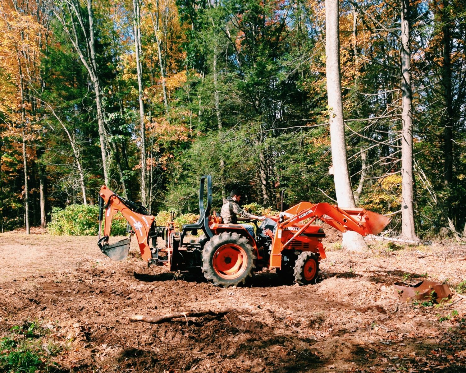 We actually have a road that goes from the house to the barn, its covered with wood chips (we have like hundreds of yards of wood chips.. we keep finding things to help use them up) so it's really easy to transport things back & forth with our truck because we can just drive right out. And we just recently got a new tractor.. much more capable than our 1949 farmall cub! Honestly the best tool I could ever hope to have. I love it SO much. No more breaking our backs dragging fencing panels across the yard!! Helps dragging cut logs and moving big tree pieces for splitting.
