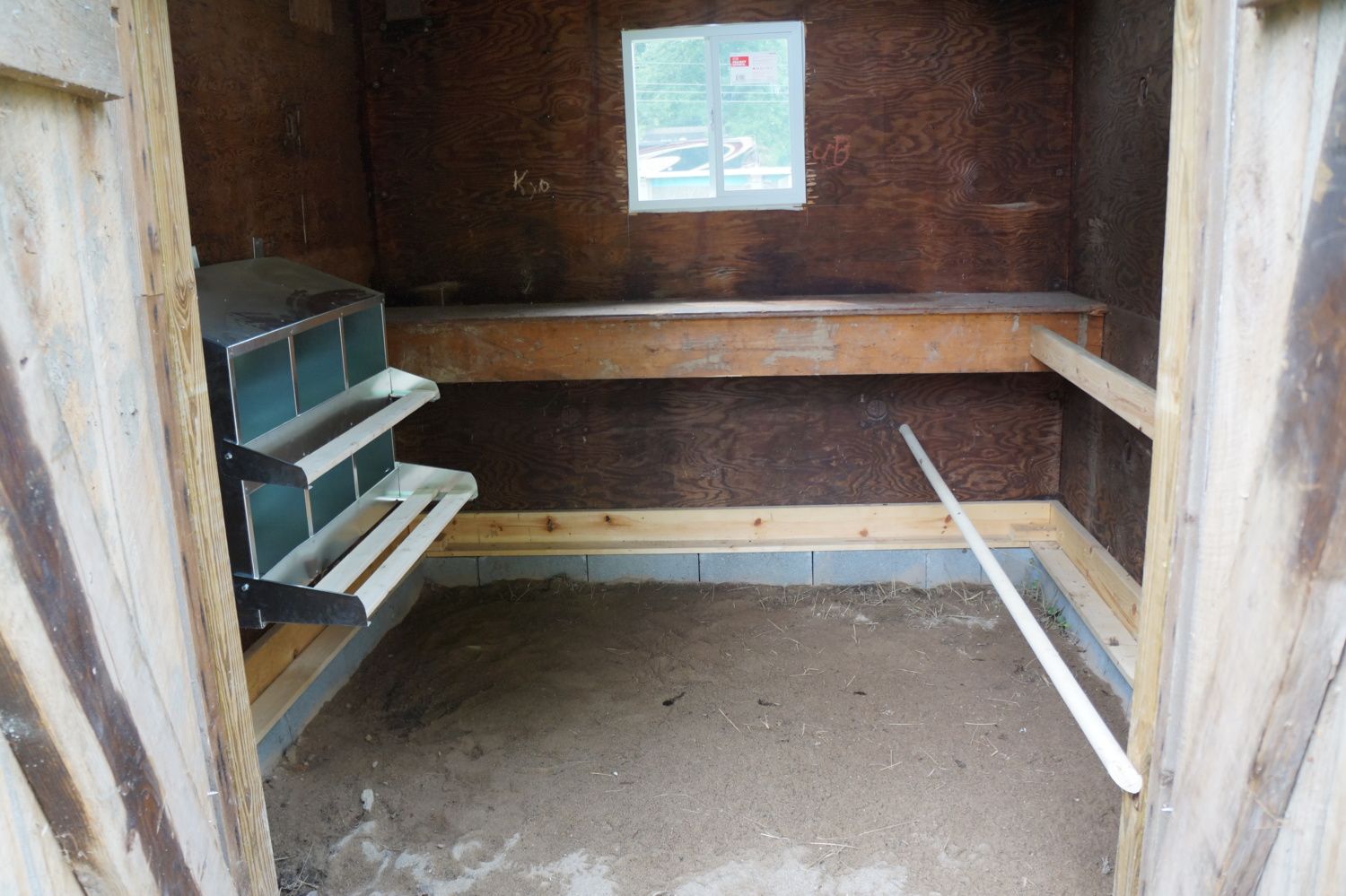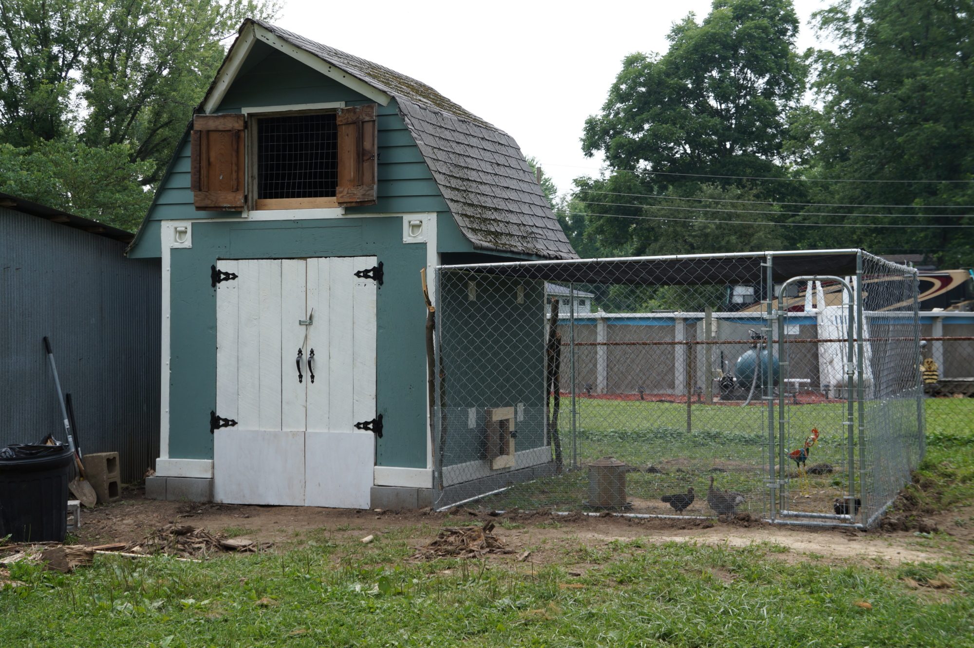 It's 64sq ft and 16 ft tall inside, 6 nesting boxes and with a 100 sq ft run outside. We currently have a little starter flock we picked up at the local feed store that consist of 1 silver laced Wyandotte, 3 golden lace Wyandotte, 1 ameraucana, 1 bronze turkey hen and 1 guinea .