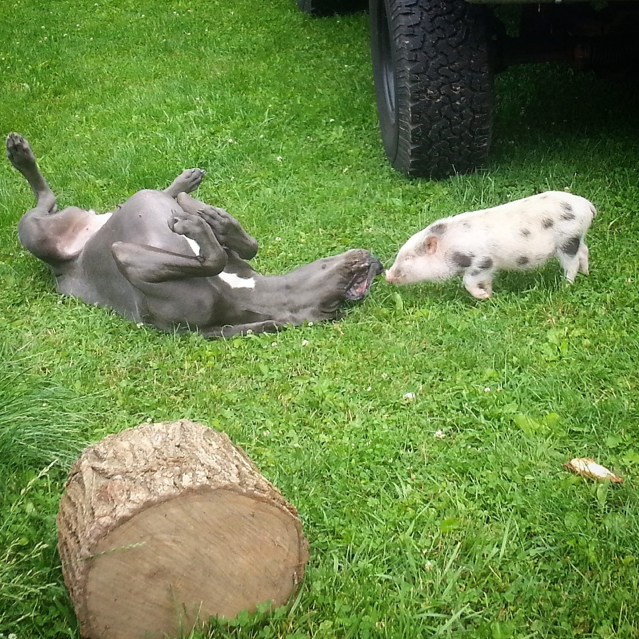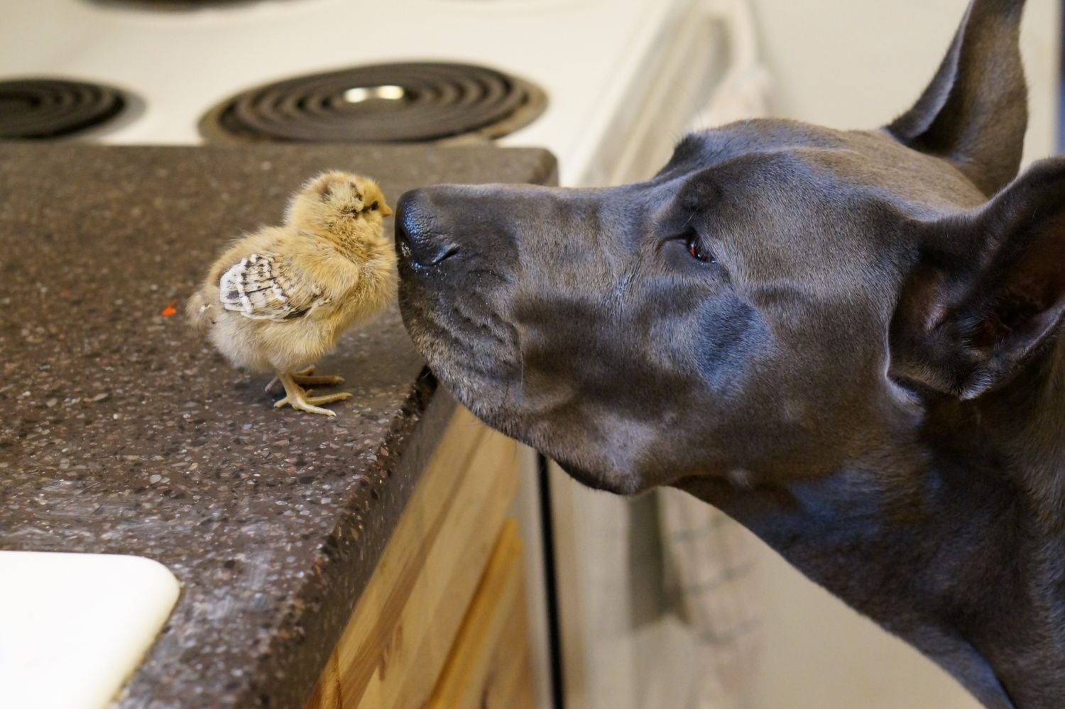 Non chicken related we also have 1 Juliana Pig (Penelope), 1 chocolate lab (Sadie) and 1 blue Great Dane (Chloe).