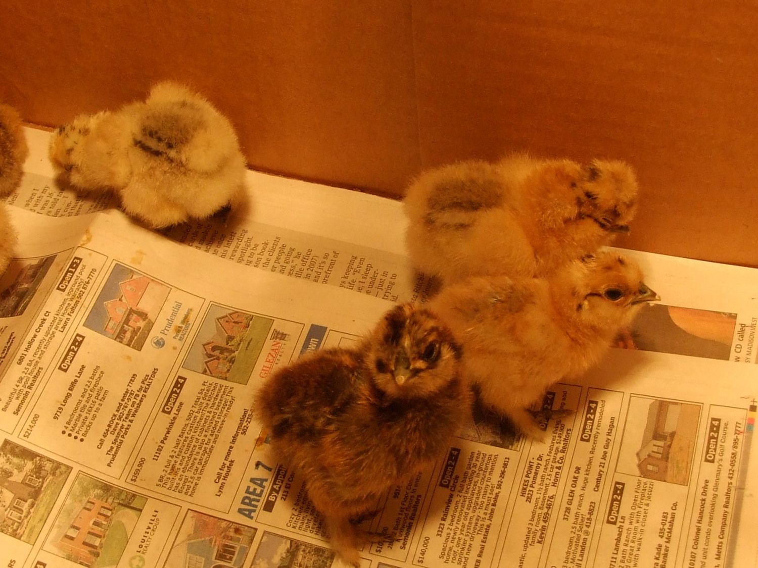 We don't ship chicks. I'm in greencastle, In. The chicks listed are sold, but I might have more in next weeks hatch. I do have a question for you, If your chicks are only a week old, how do you know the sexes??. I've had some I couldn't sex til 5 months old.Silkies are extremely hard to sex, unless one crows early. I've don't know anyone that can sex week old silkies.. Sure wish I could though !! LOL !!I am looking for 3 or 4 black or buff silkie pullets. My babies are only a week old and I have 3 roos and 3 pullets, that is why I want 3 or 4 more. Not sure how far away you are either, do you ship your chicks or be willing to meet somewhere?