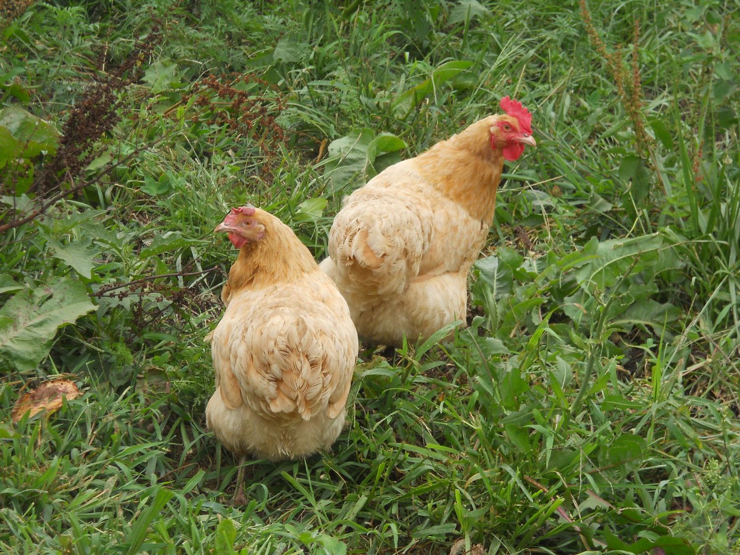 I have 10 buffs, 5 golden commets, 1 that is susposed to be and an black ameraucana (but she lays Brown eggs) 3 white hens (unknown) (lay white eggs)and 2 real colorful hens that lay brown eggs. (unknown)