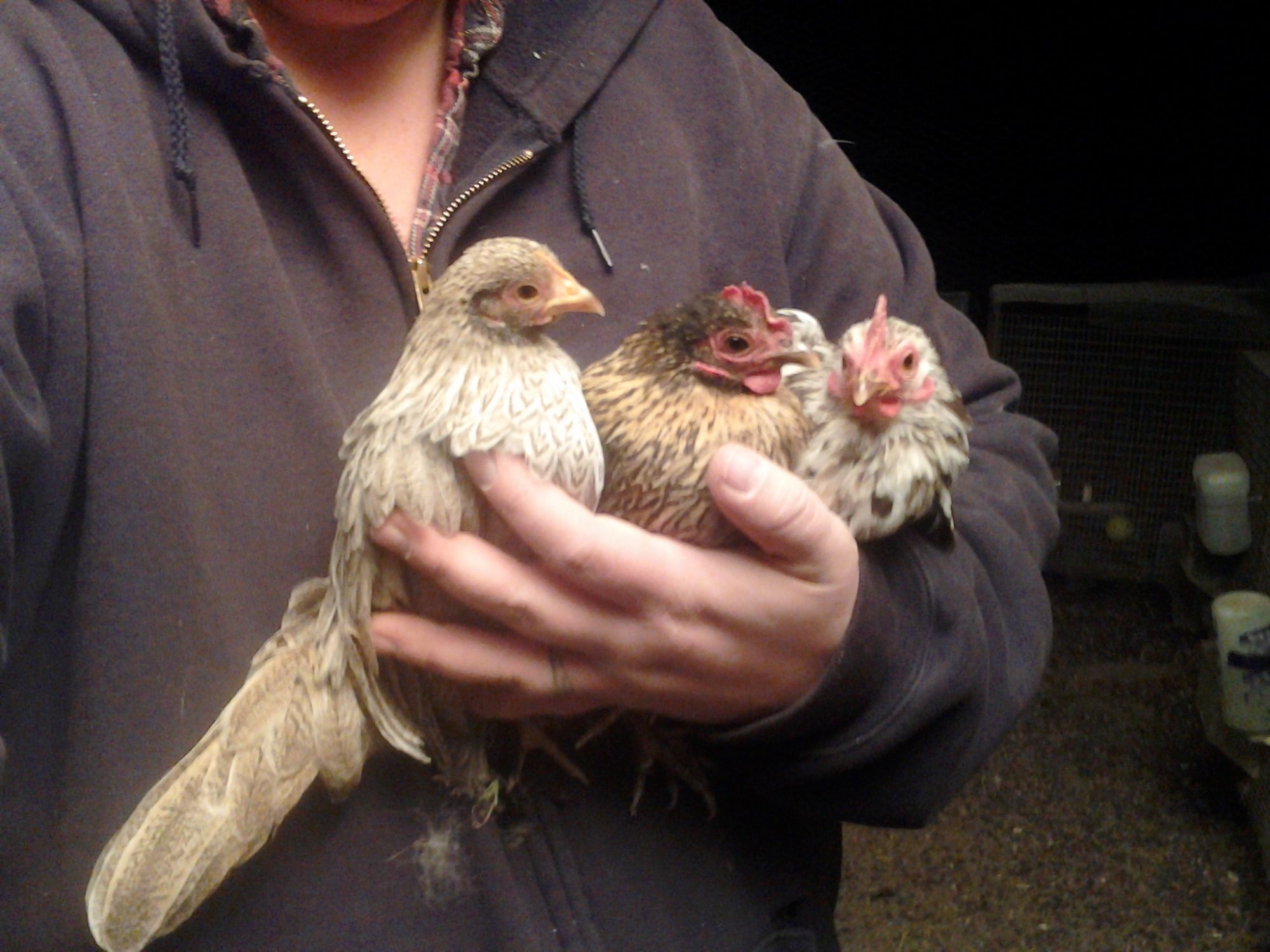 My husband and I own a feed store, and recently a customer brought in 3 Seramas and just said they didn't want them anymore (SCORE!!!!) This is my first go-round with Seramas, I'm not even sure if they're American or Traditional, what kind of class they are, nothing...the only things I know is they're all spring hatches from this year, I have 2 hens and a rooster, and they're all friggin adorable