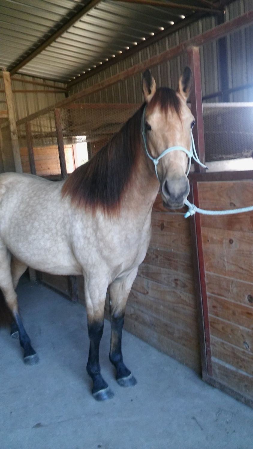I have a White (Grey) QH Gelding. He is around 23 years old, but as ornery as ever! His name is Mo. (kind of boring, but he came with it.) we got him a couple years ago. He is 15.3 hh. At the time, we were just looking for a horse that was okay, but not too expensive. Anyway, he is really barn sour, but I have broke him out of a lot of it.