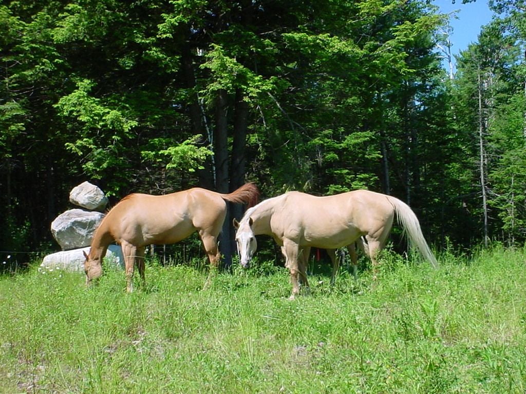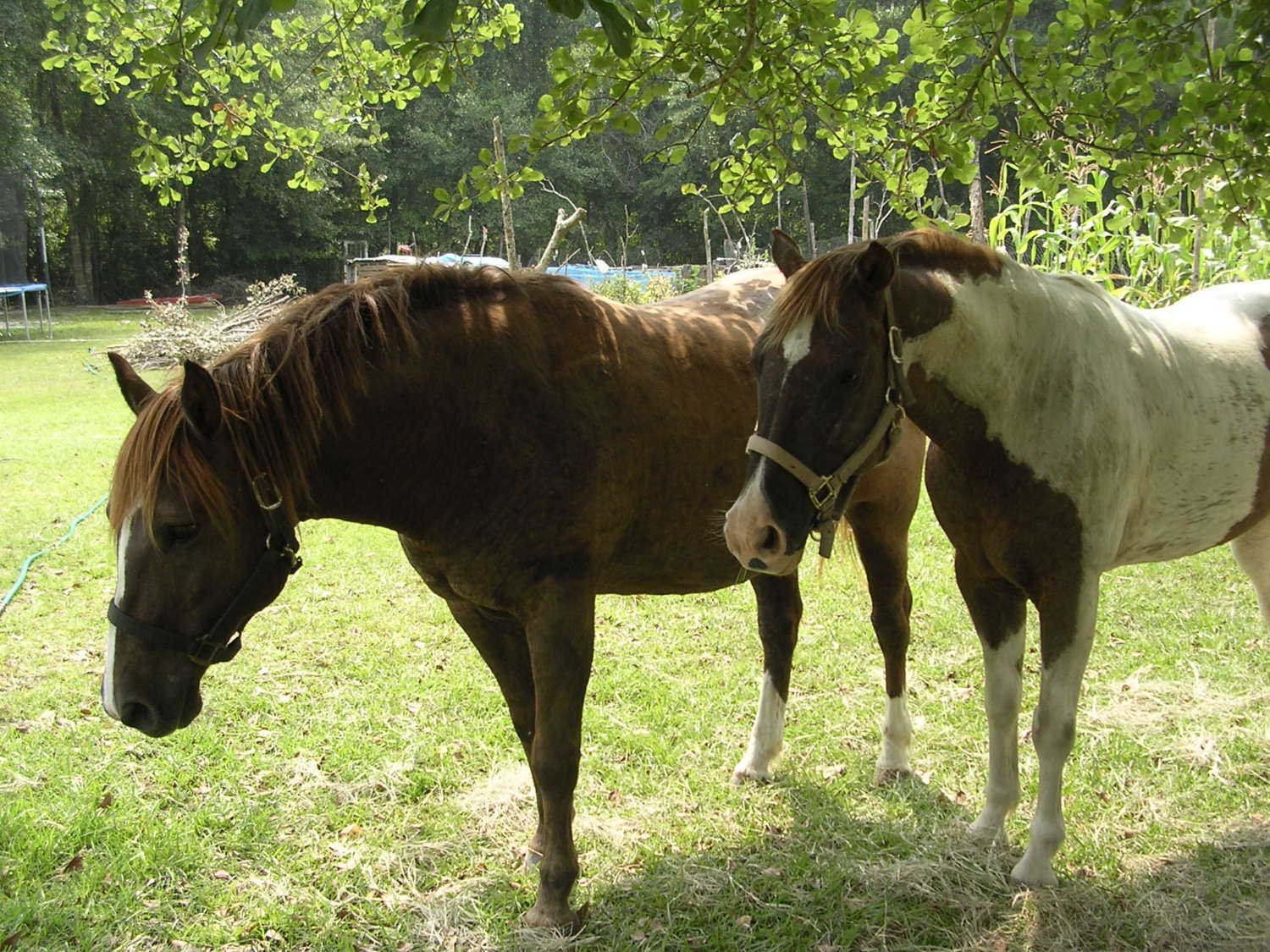 Chic on the right APHA 13 year old mare, Scoot, left 15 year old red dun AQHA gelding.Scoot is the son of Lacy.