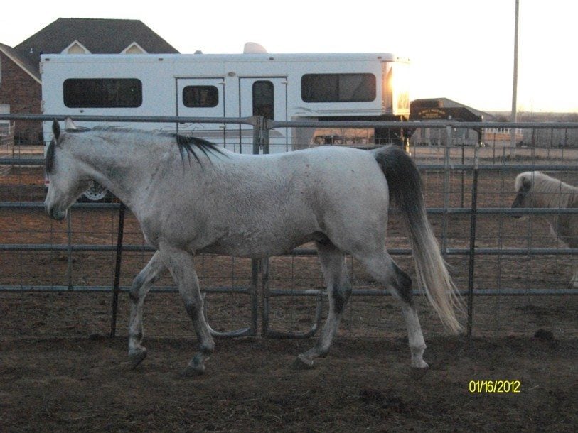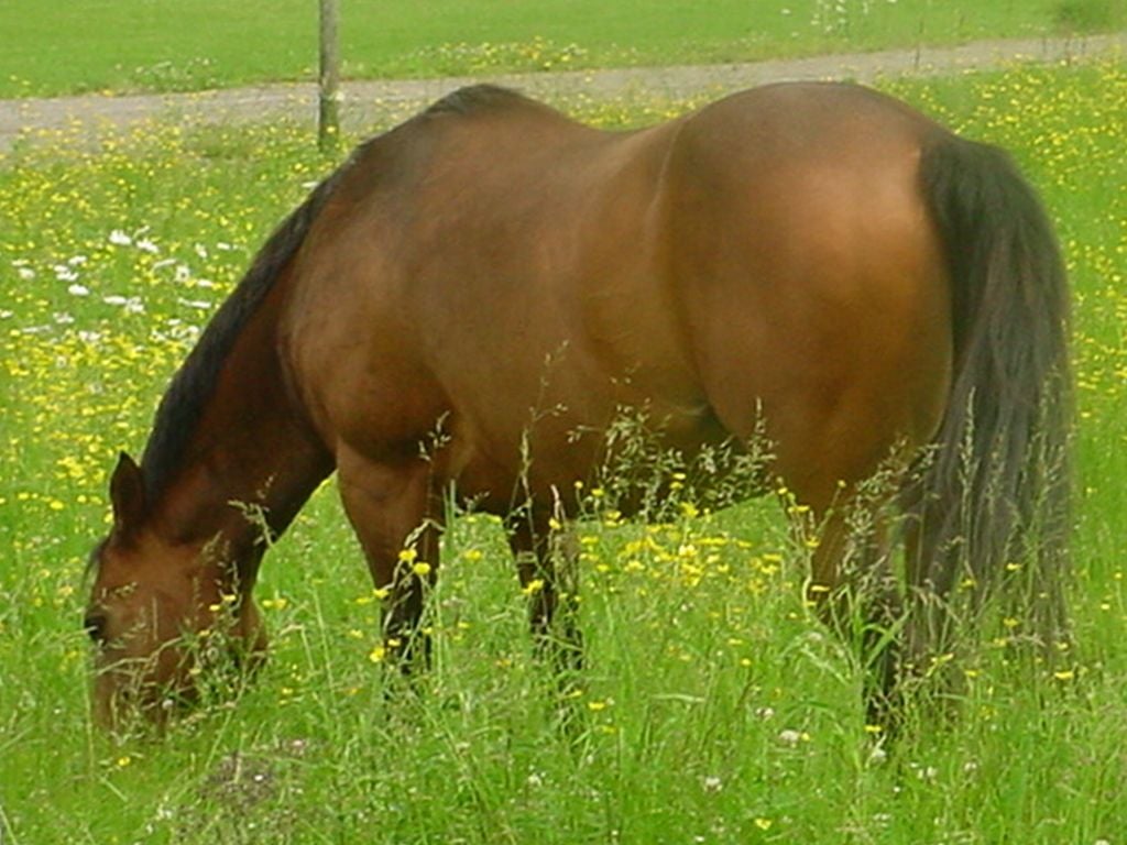 Nikki 25 year old AQHA dark buckskin mare.