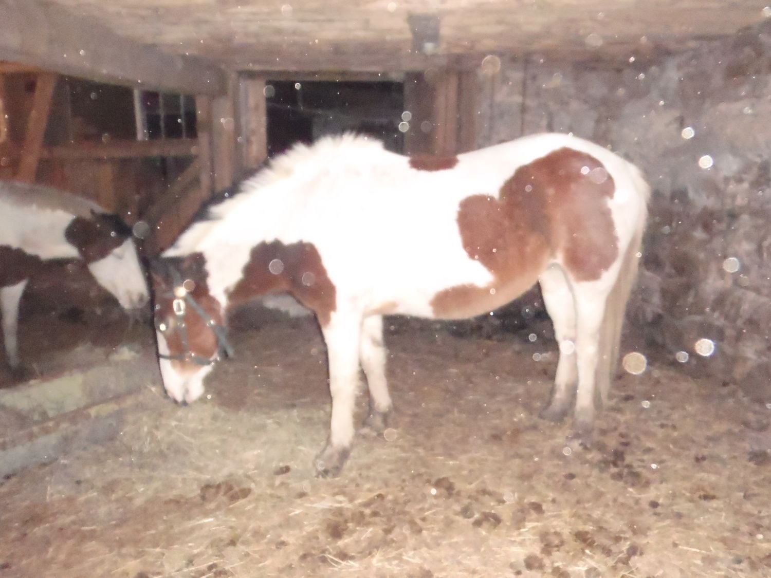 My horse? She around 14 hands (I'm not good at using hands) and in between a bay and dun paint.