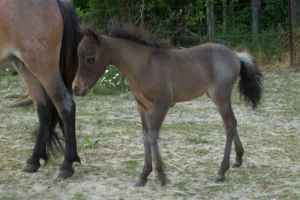 I was hand-watering an area in her paddock, and she came moseying over to see what I was doing. She sniffed at the wet ground a few times, and even pawed at it a little, like a horse that is thinking about going down. She stuck her nose in the water stream, and played with the water with her lips - which got it all over me, of course ("hey, Sunny! Watch me give the Hay Lady a bath!") Finally, she parked her big yellow self right in the middle of the area I was watering. "What's this, Big Blond, do you want me to water you, too?" So I started playing the water on her legs, and worked my way up. She didn't like it in her face, but anywhere else - oh, yeah! She even pinned her ears at Sunny when she tried to get in on it. I guess kids aren't the only ones who like to play in the hose on a hot day!